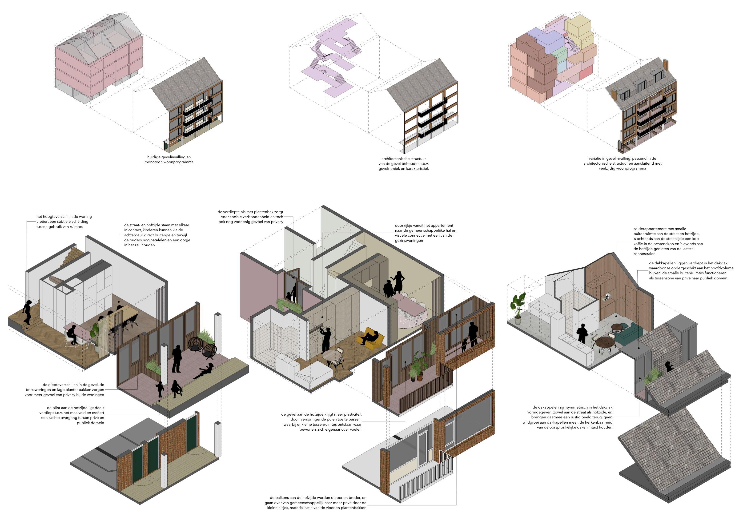 In mijn afstudeerproject heb ik zowel de verdichtingsmogelijkheden binnen de bestaande contouren van de bebouwing als hoe om te gaan met bestaande cultuurhistorische en architectonische waarden van deze veel voorkomende portiekbebouwing in Nederland onderzocht.
