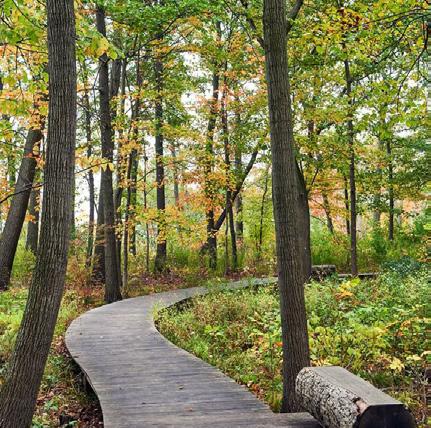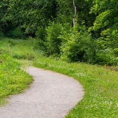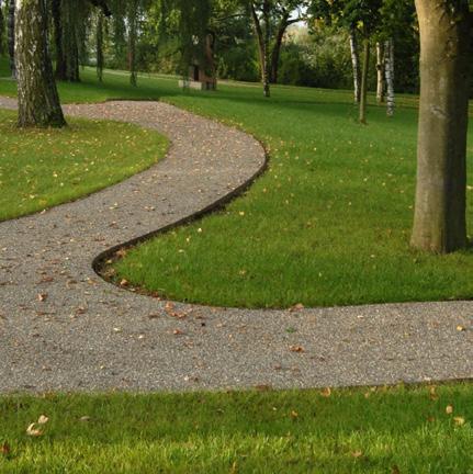 Soft surfaces such as grass, gravel or wood invite slower movement. They require more bodily awareness than hard pavement and encourage users to adjust their pace, becoming more attentive to their surroundings. In addition, an unpaved surface also requires a certain amount of deceleration. It takes a little more effort and energy to walk than on a smooth, paved surface. Finally, a soft surface encourages slowing down because the user can feel invited to explore the surface tactilely.