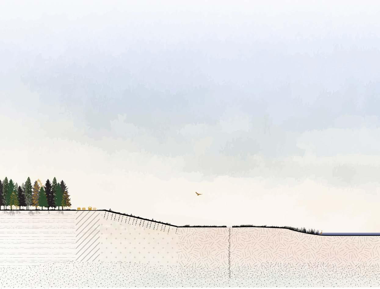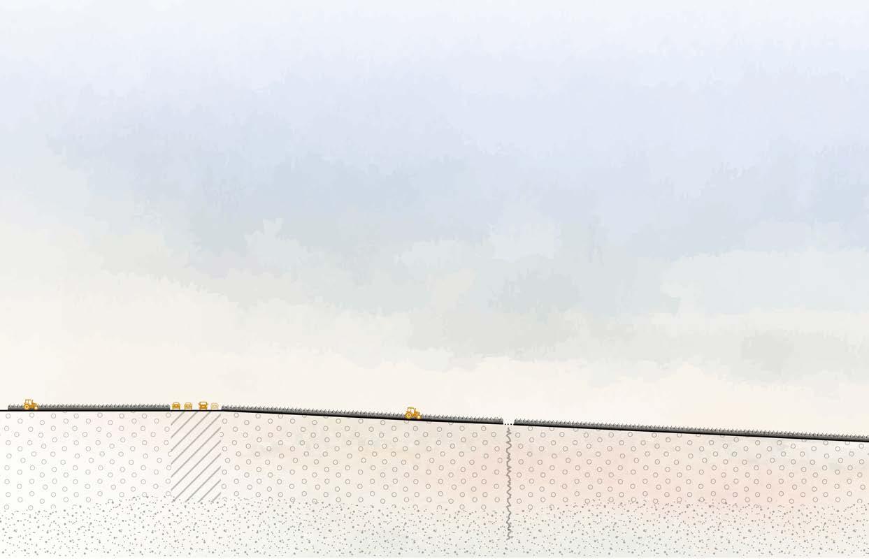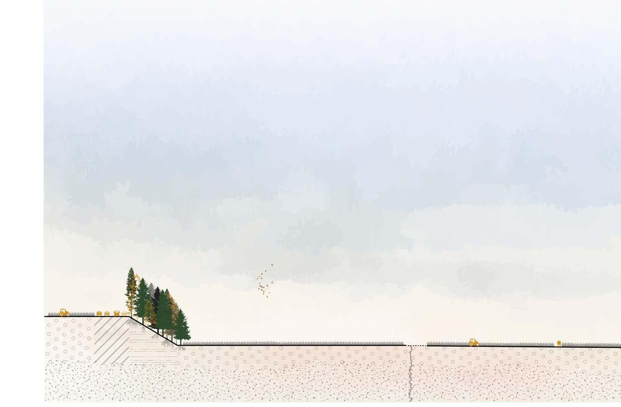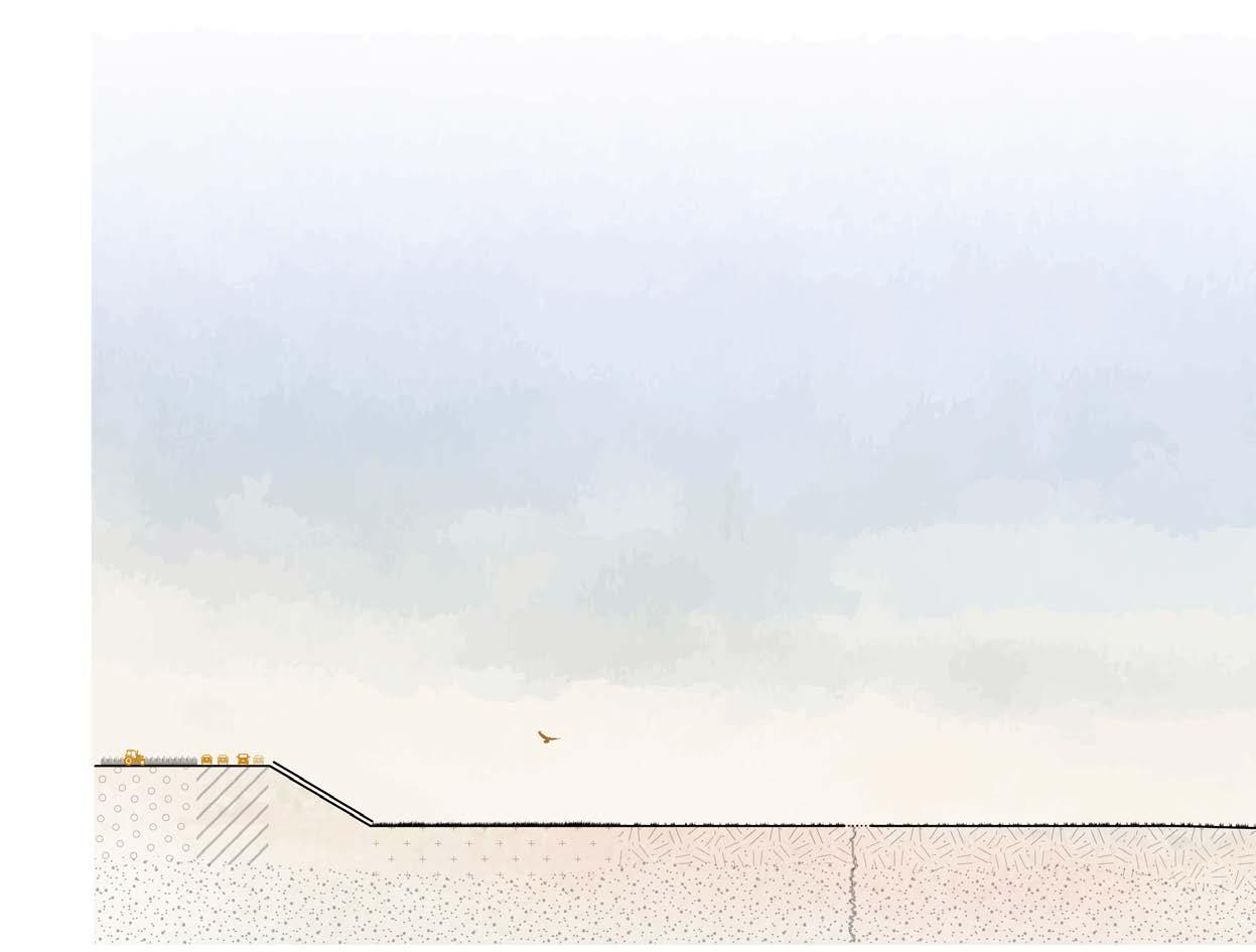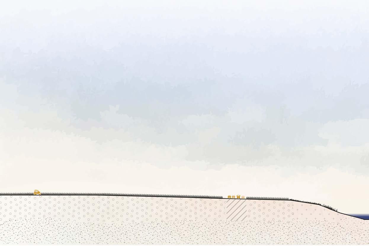 Het ontwerp bestaat uit een gefaseerde strategie met vier tijdsstappen 2025 - 2057 - 2075 - 2100. In plaats van het landschap vast te zetten, begeleiden harde en zachte maatregelen het natuurlijke erosieproces op een veilige en gecontroleerde manier. Het uiteindelijke landschap wordt daardoor niet door de mens ontworpen, maar door de natuur zelf gevormd. Na 2100 verschuift het