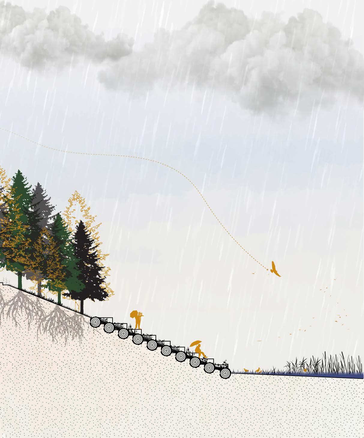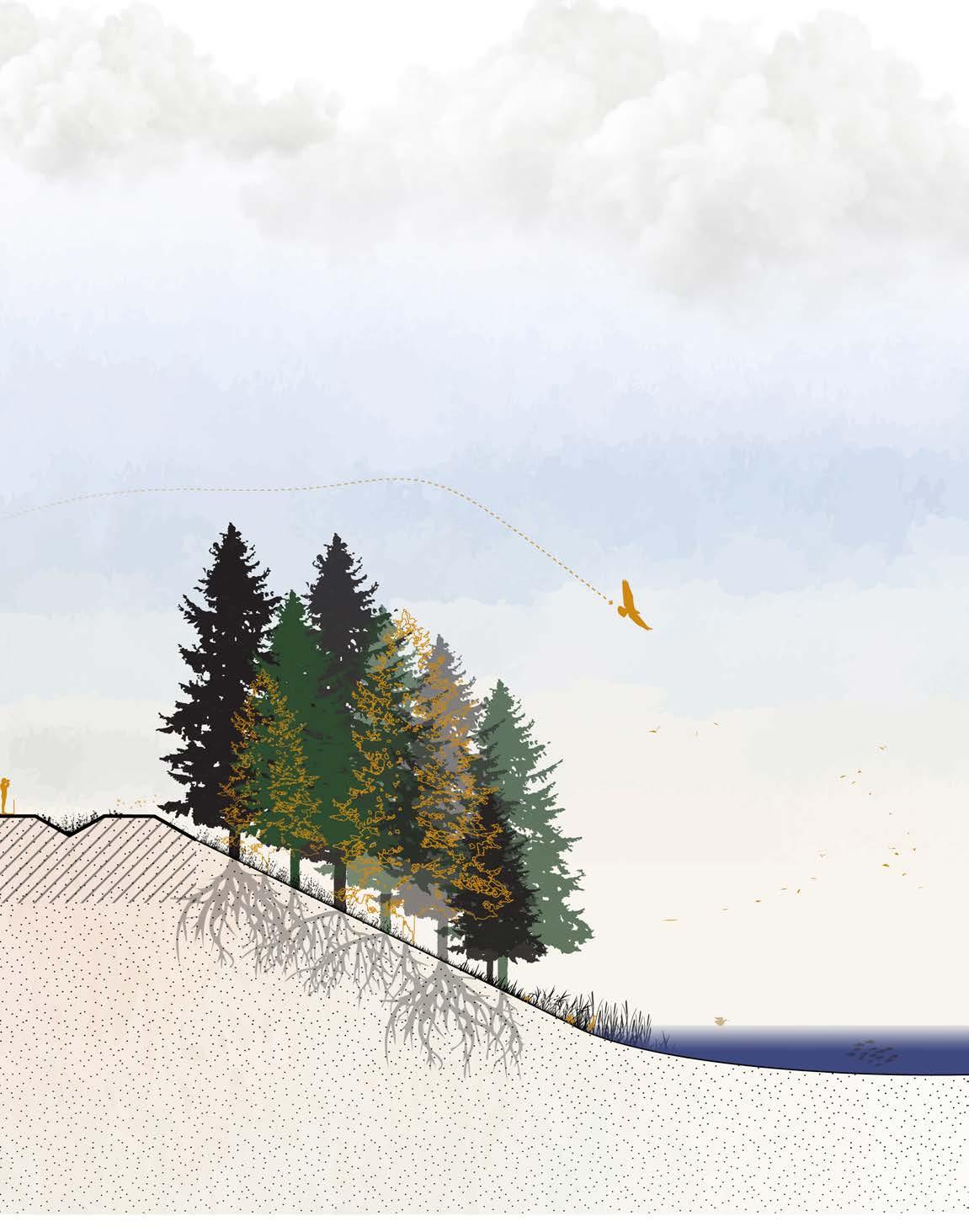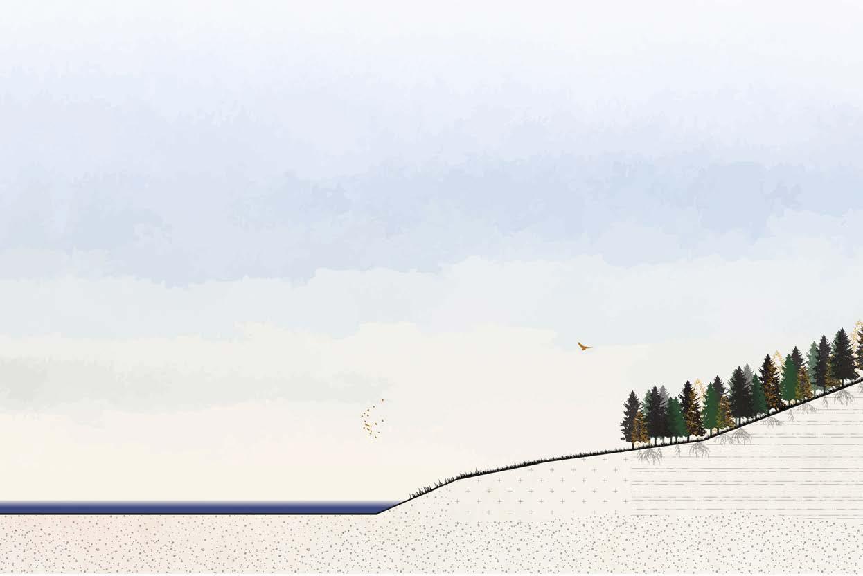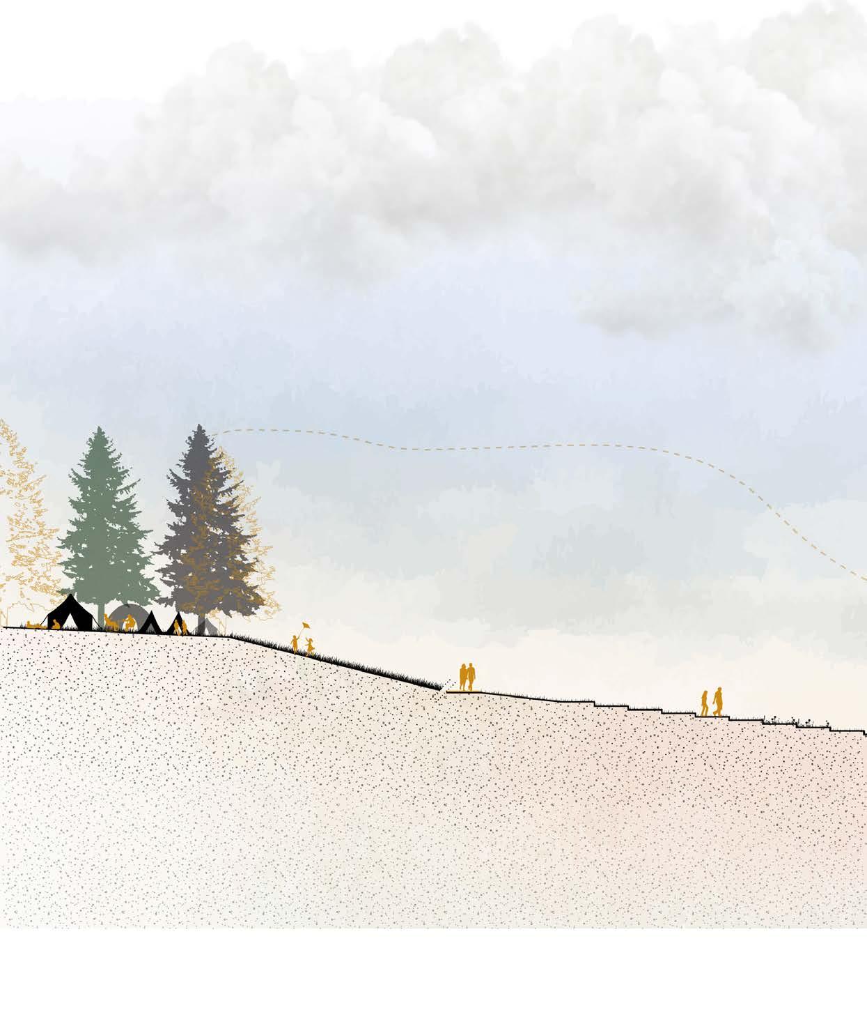 Het ontwerp bestaat uit een gefaseerde strategie met vier tijdsstappen 2025 - 2057 - 2075 - 2100. In plaats van het landschap vast te zetten, begeleiden harde en zachte maatregelen het natuurlijke erosieproces op een veilige en gecontroleerde manier. Het uiteindelijke landschap wordt daardoor niet door de mens ontworpen, maar door de natuur zelf gevormd. Na 2100 verschuift het