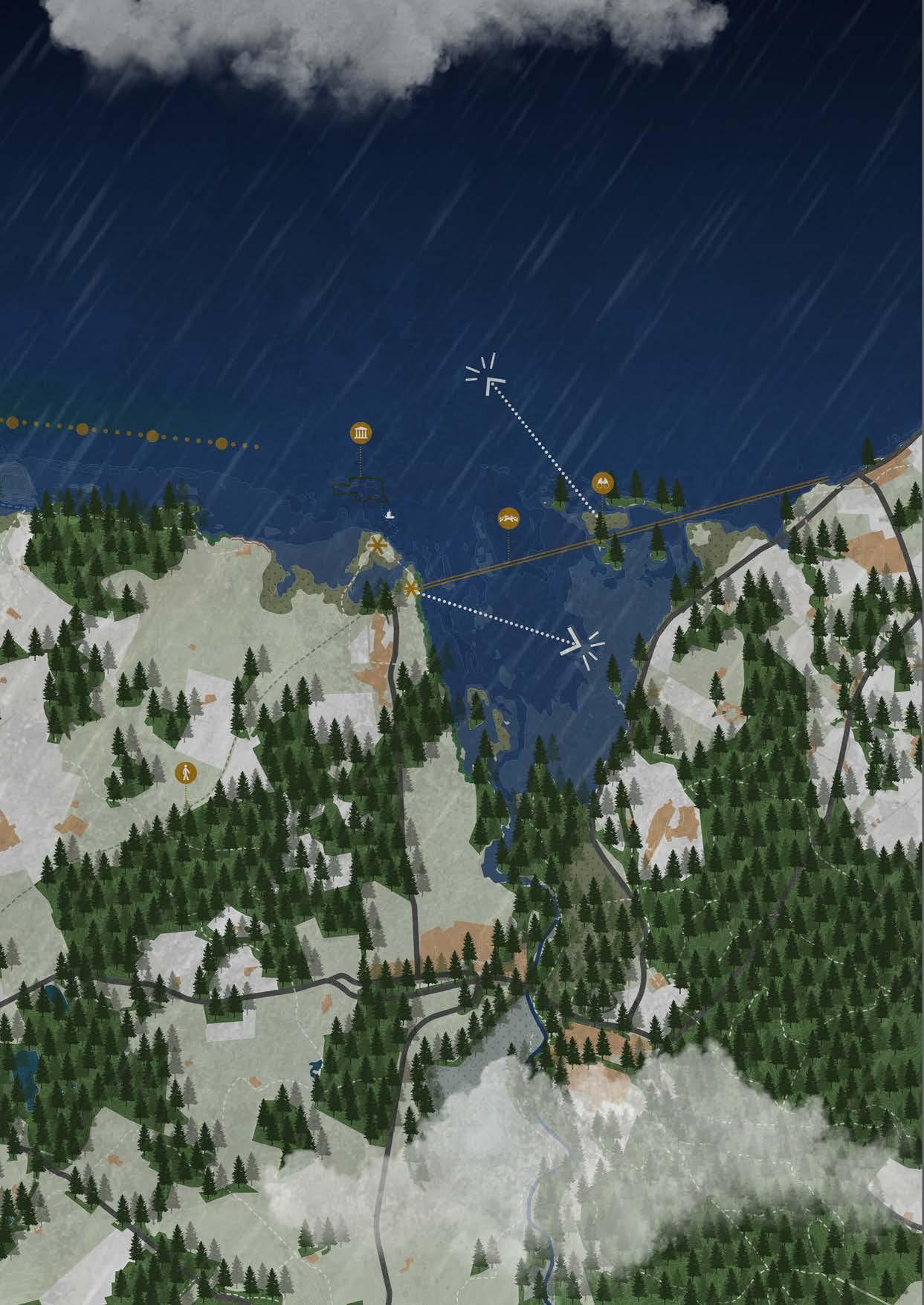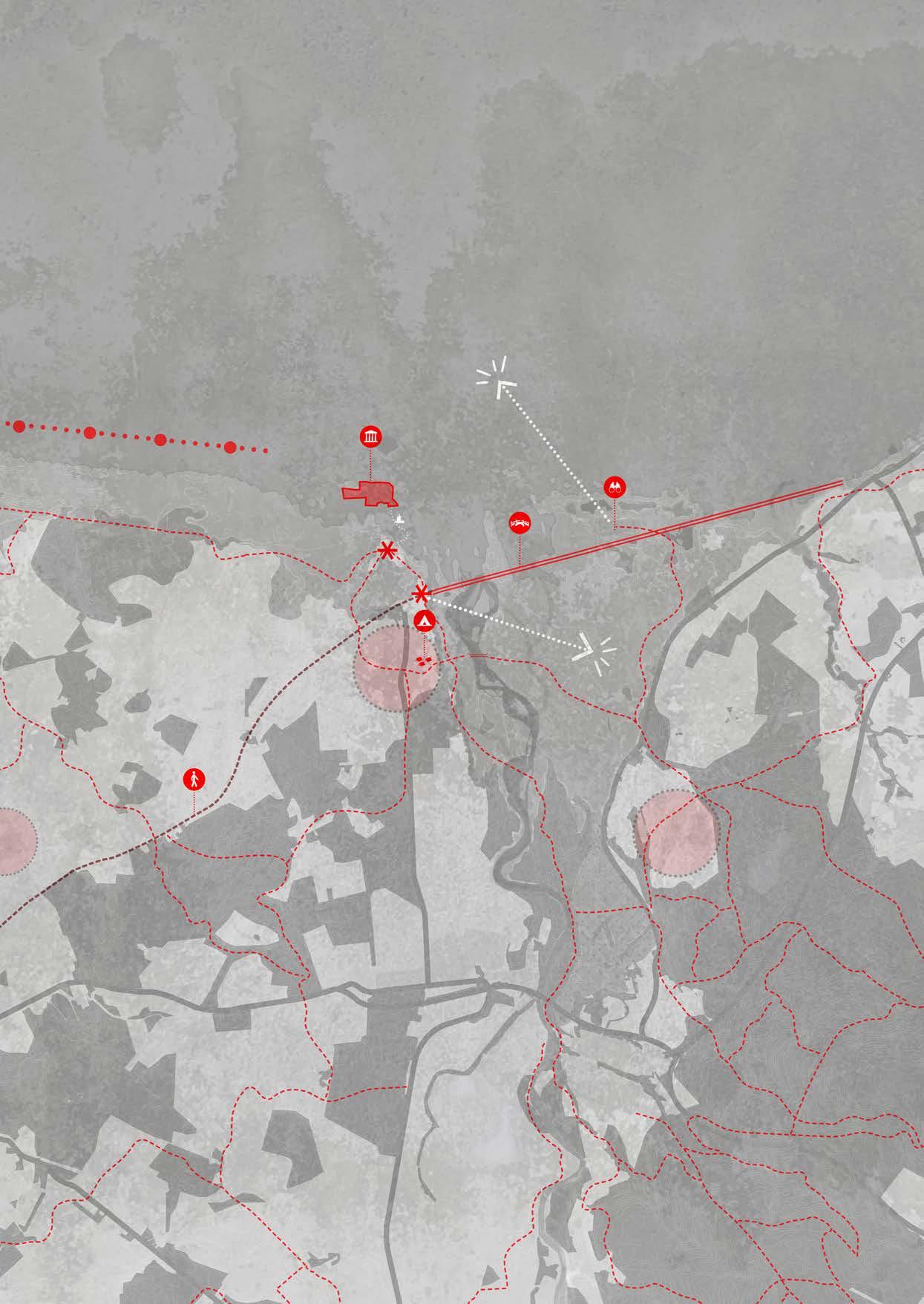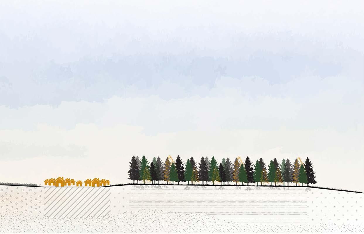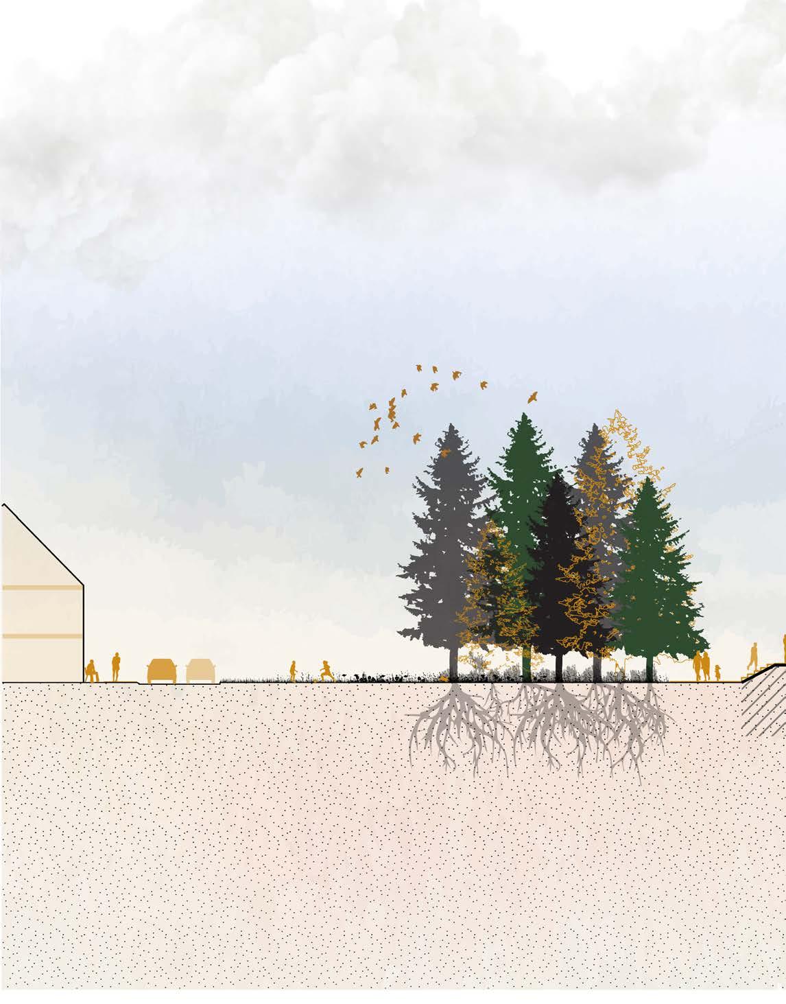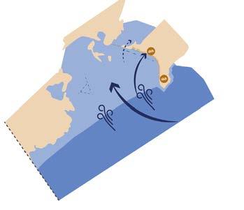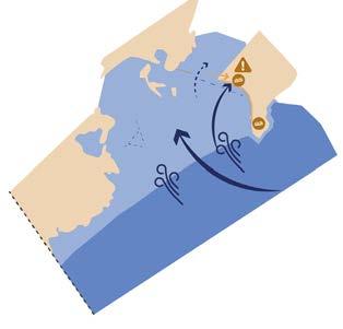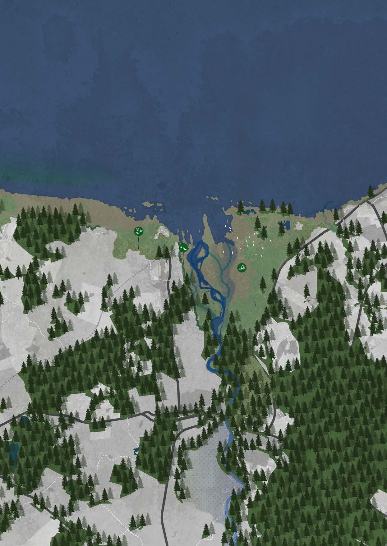 nu opnieuw aan de rivier, maar dan bovenop de cliff. Zo behoudt Garmouth, net als voorheen, de sterke connectie met zowel het water als het achterliggende land. Aan de westzijde van het dorp bevindt zich een gefaseerd gebied voor tijdelijke woningbouw, bedoeld voor bewoners uit de omgeving die door erosie moeten verhuizen.