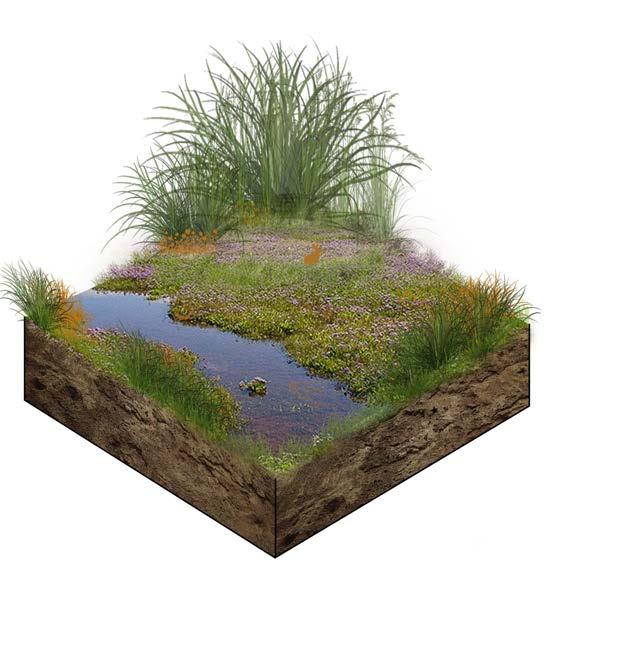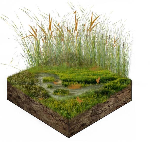 Graslanden ontwikkelen zich op hoger gelegen delen van het landschap die slechts incidenteel overstromen. Hierdoor ontstaat een relatief droge en stabiele bodem waarop grassen en kruiden kunnen domineren. Kenmerkende soorten in deze vegetatietypen zijn onder andere rood zwenkgras, klaver en boterbloem.