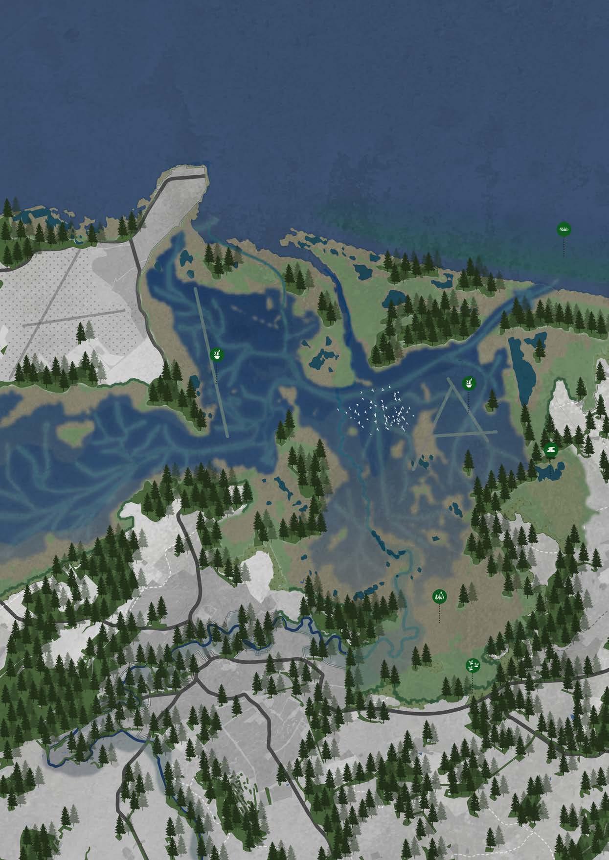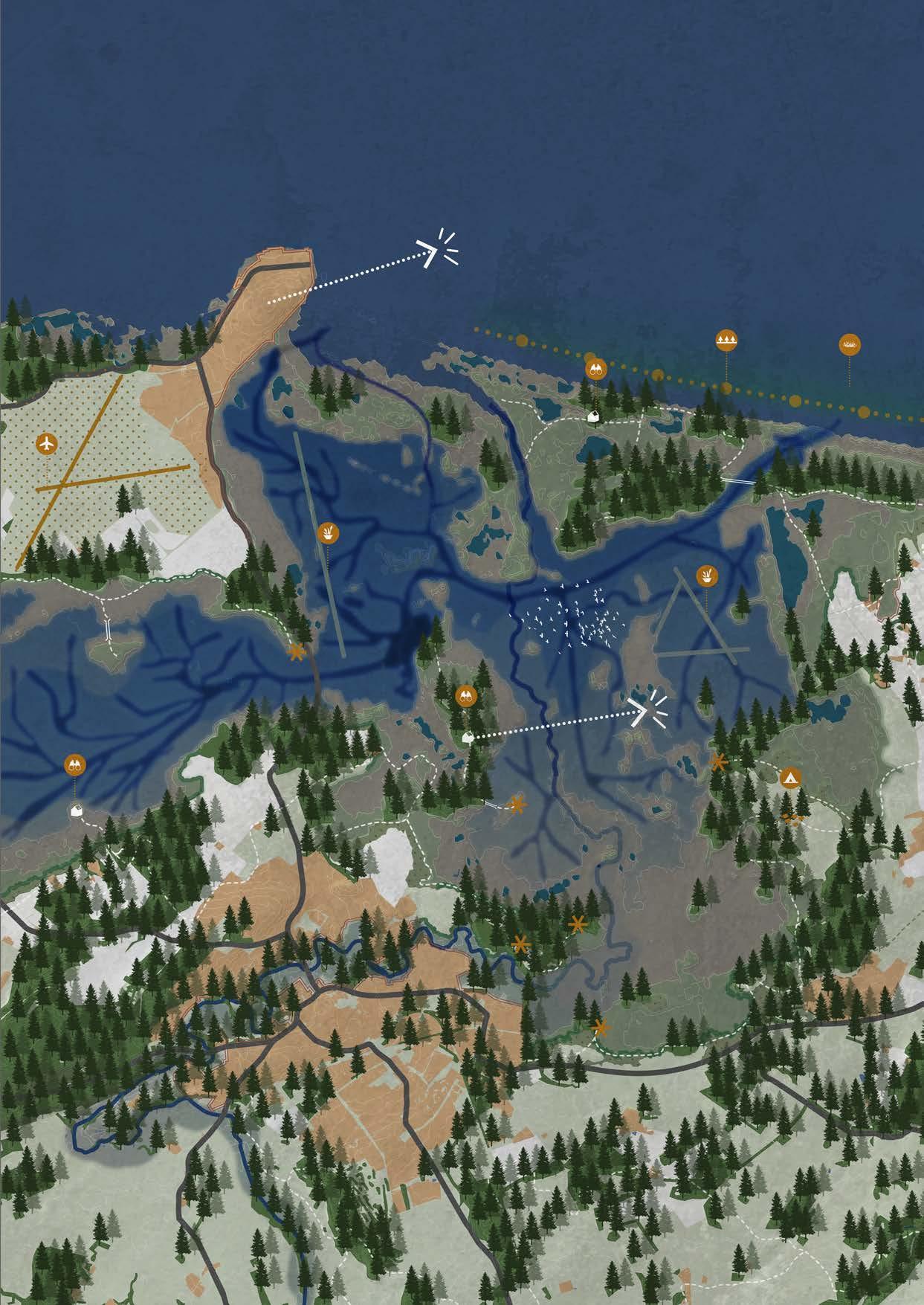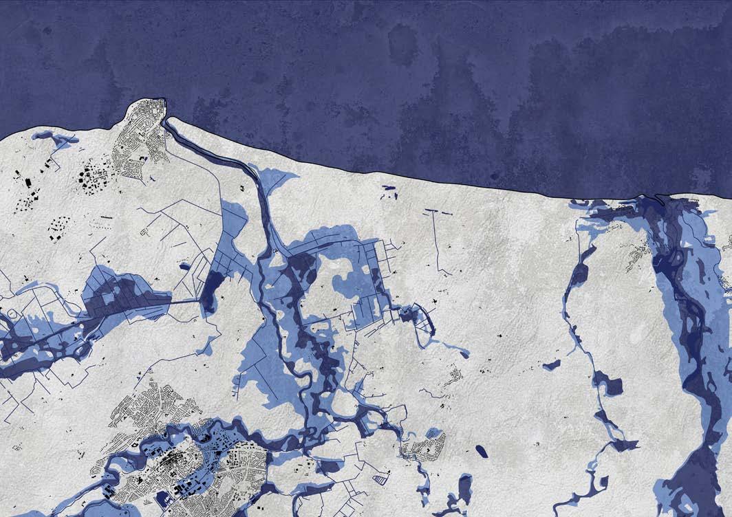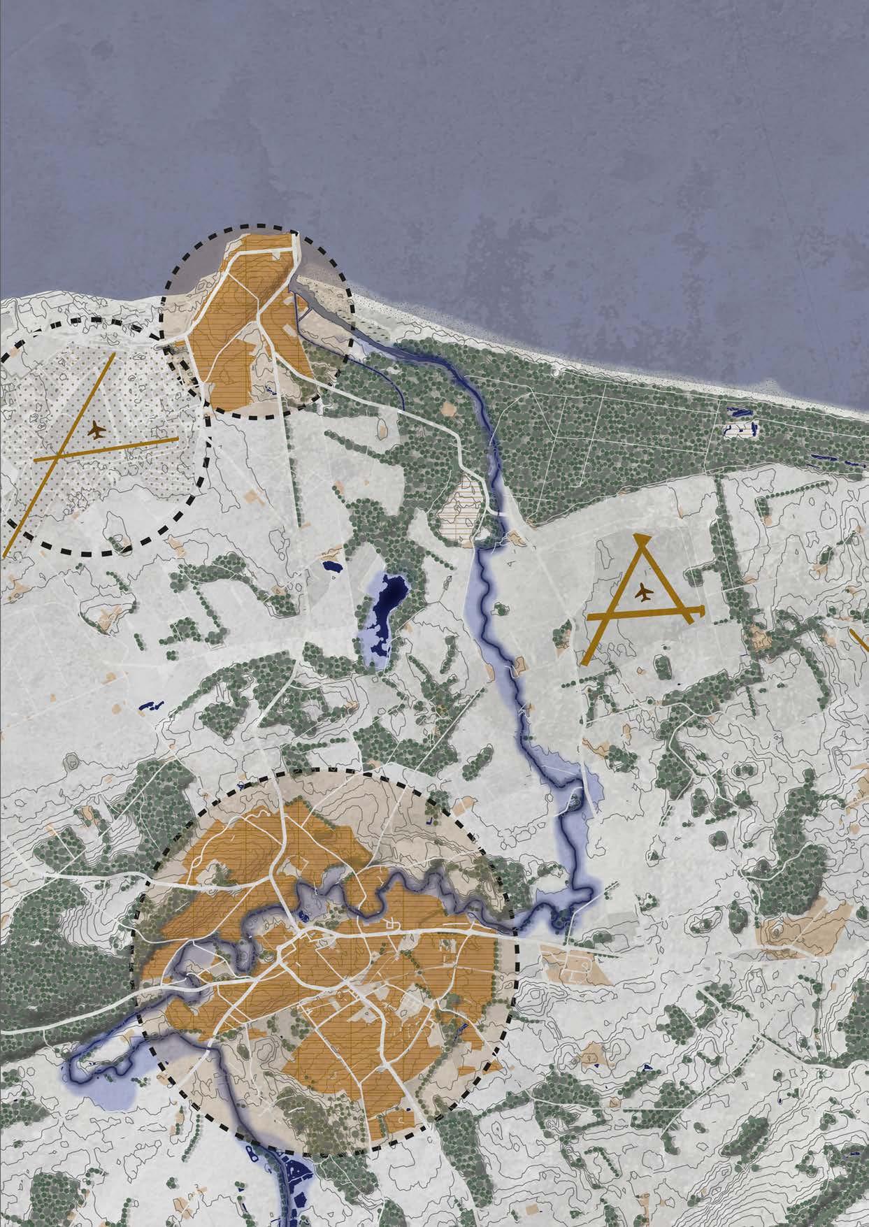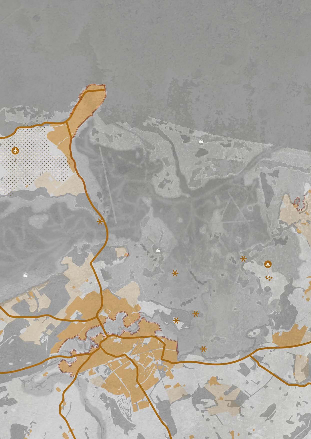 Rondom de stad zijn nieuwe landbouwgebieden ingericht. Deze lagen voorheen op de plek waar nu de delta en estuaria zijn ontstaan, waardoor landbouw en riviersysteem elk hun eigen plek hebben gekregen.