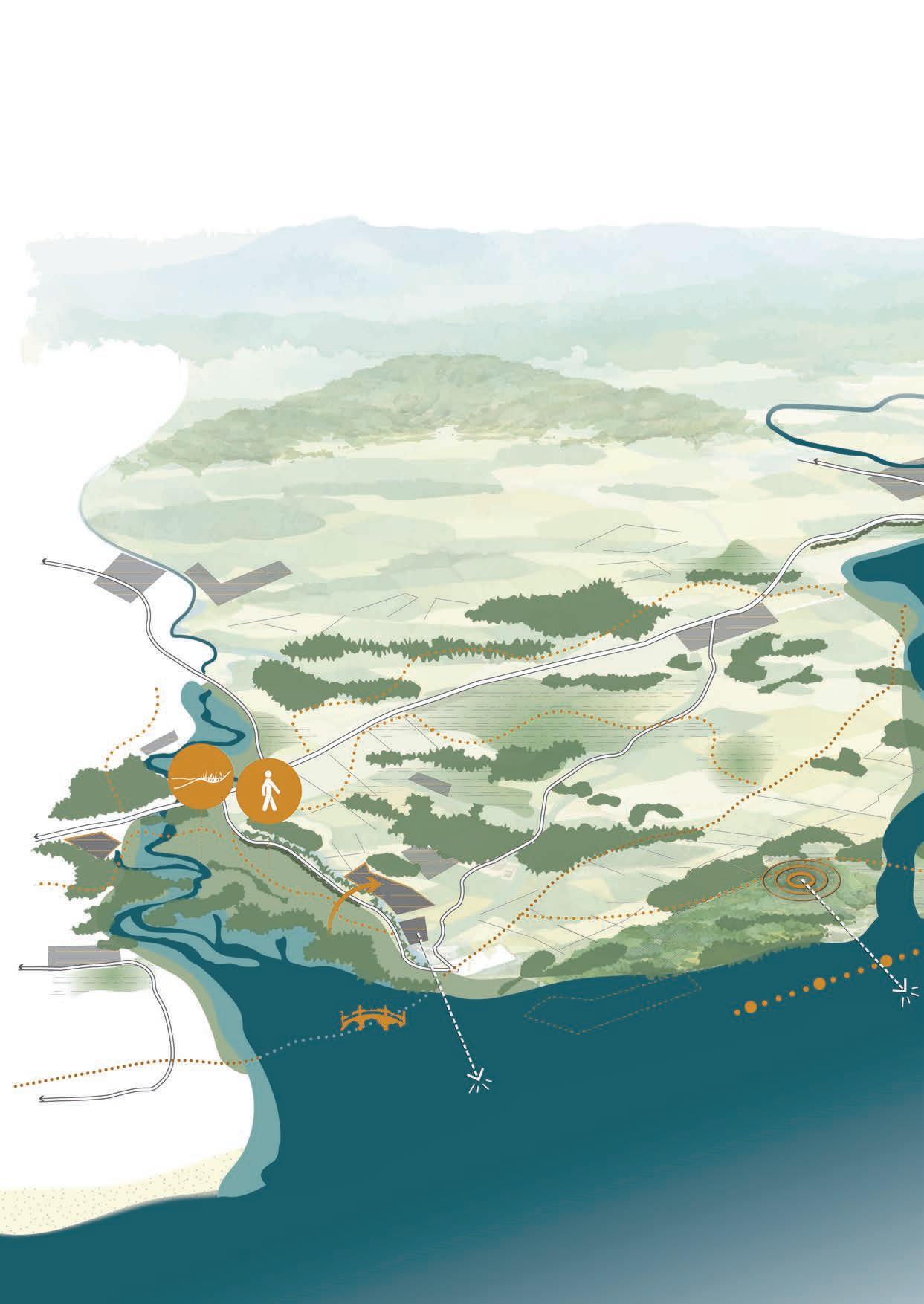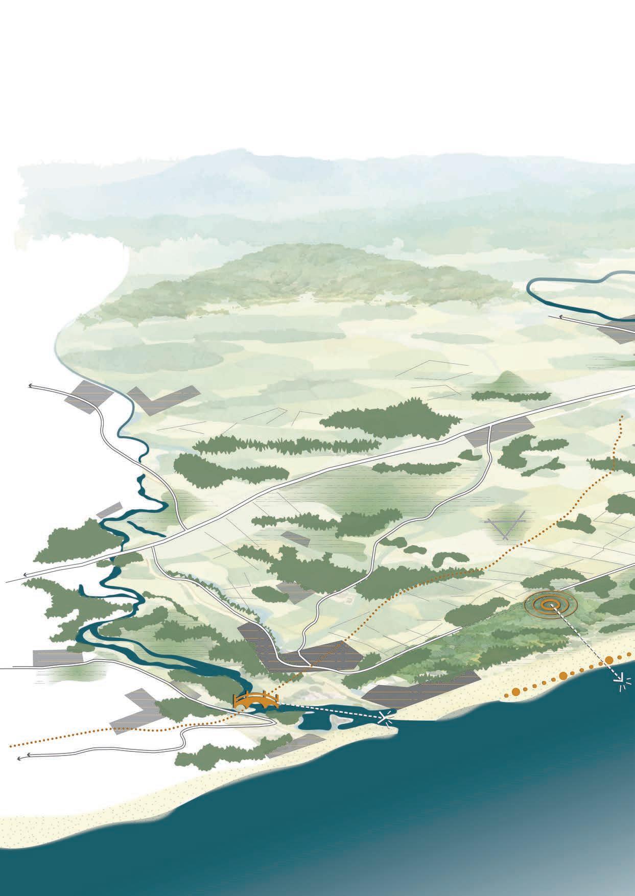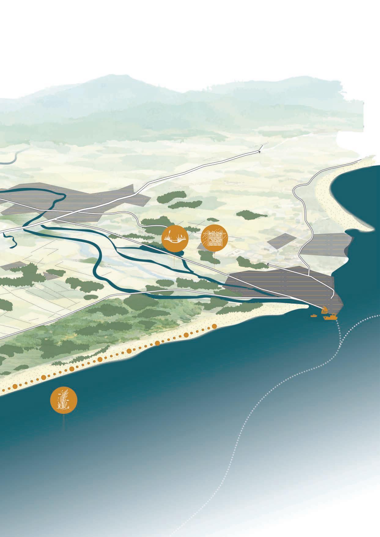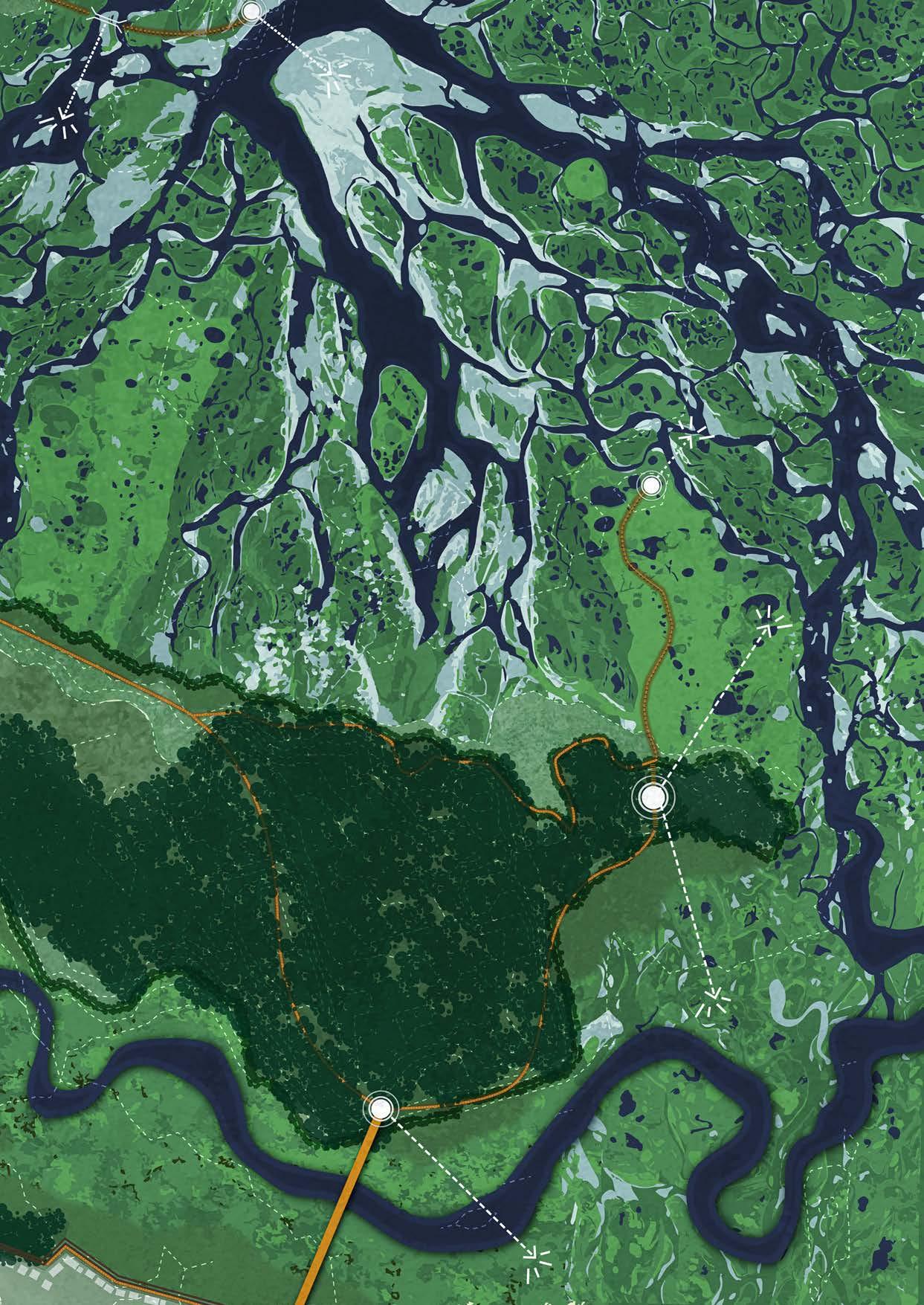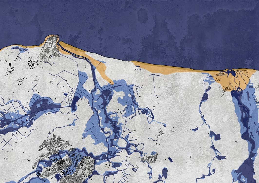 Rondom de stad zijn nieuwe landbouwgebieden ingericht. Deze lagen voorheen op de plek waar nu de delta en estuaria zijn ontstaan, waardoor landbouw en riviersysteem elk hun eigen plek hebben gekregen.
