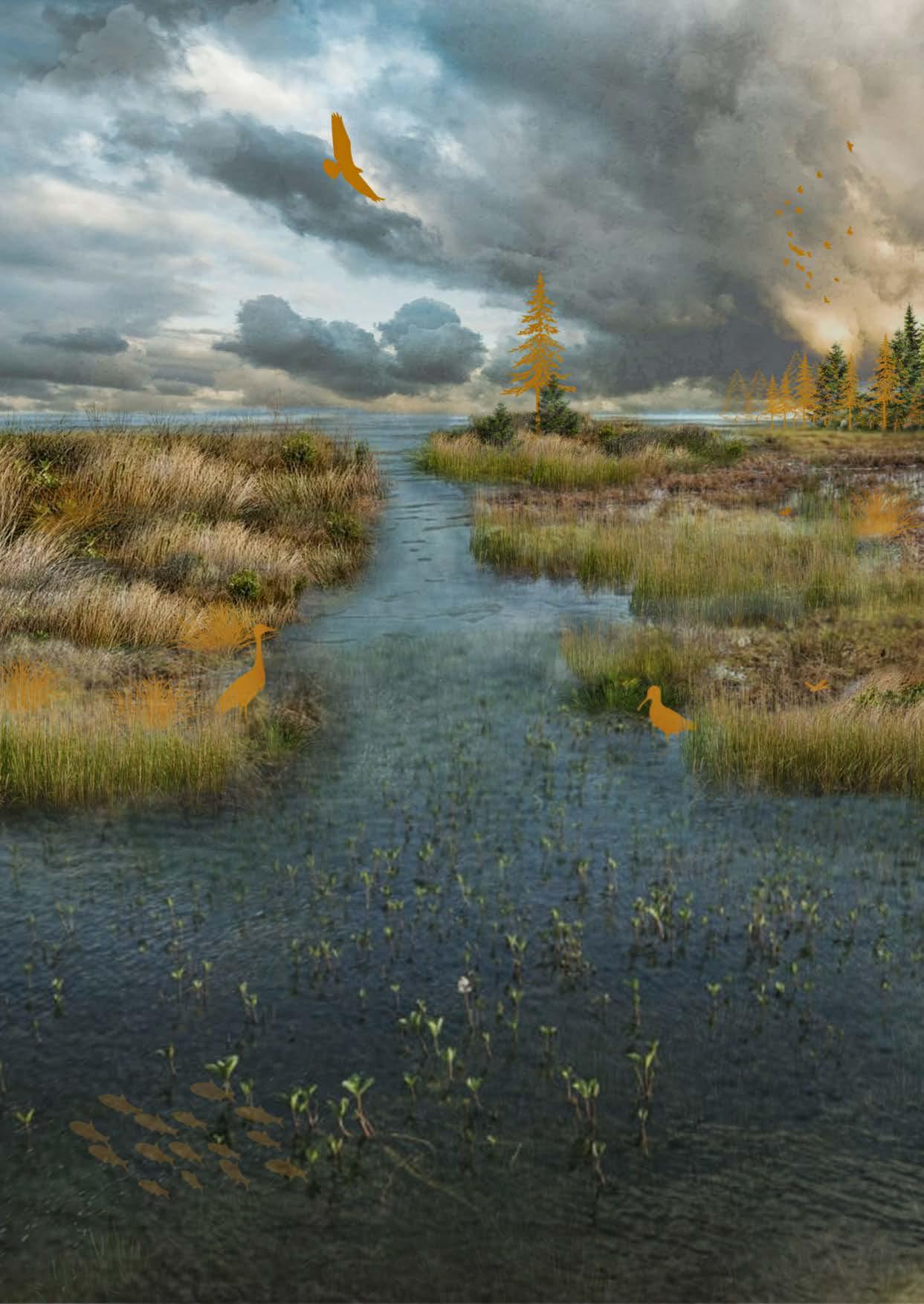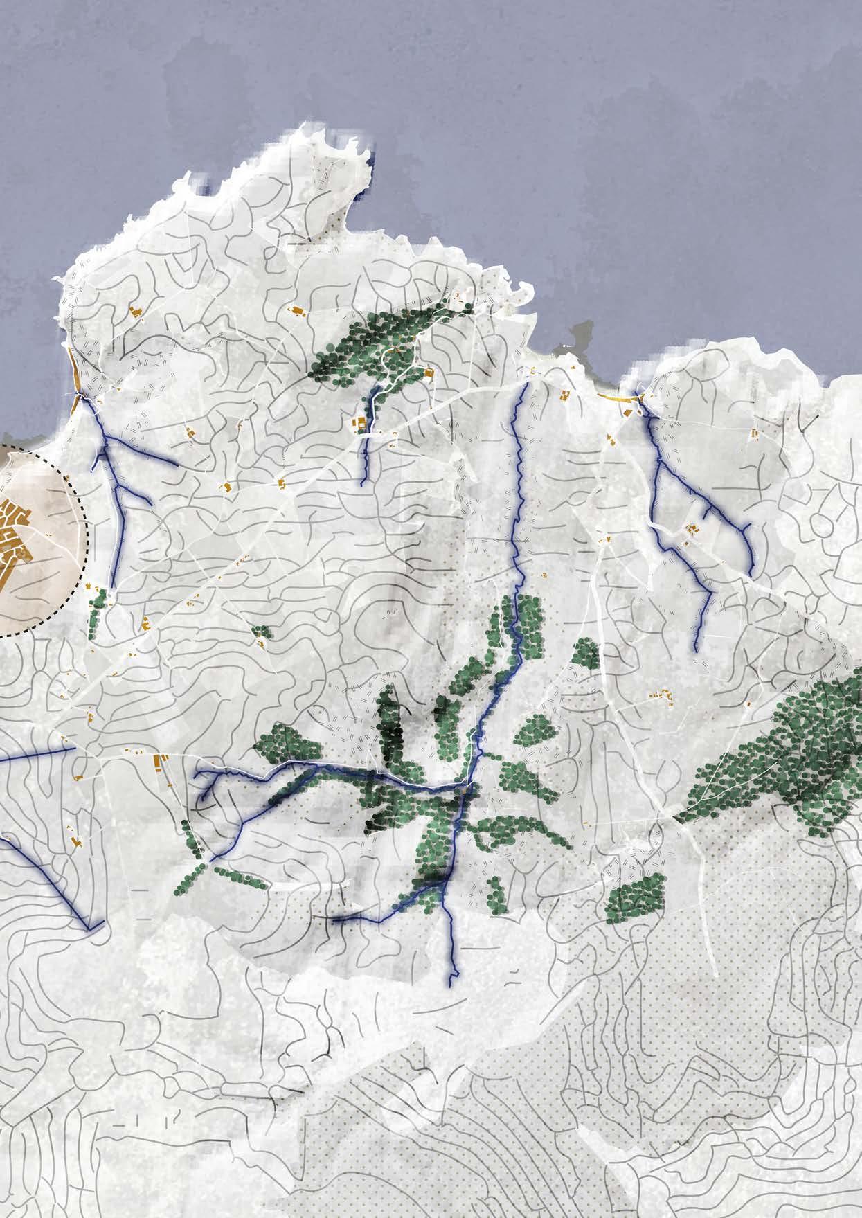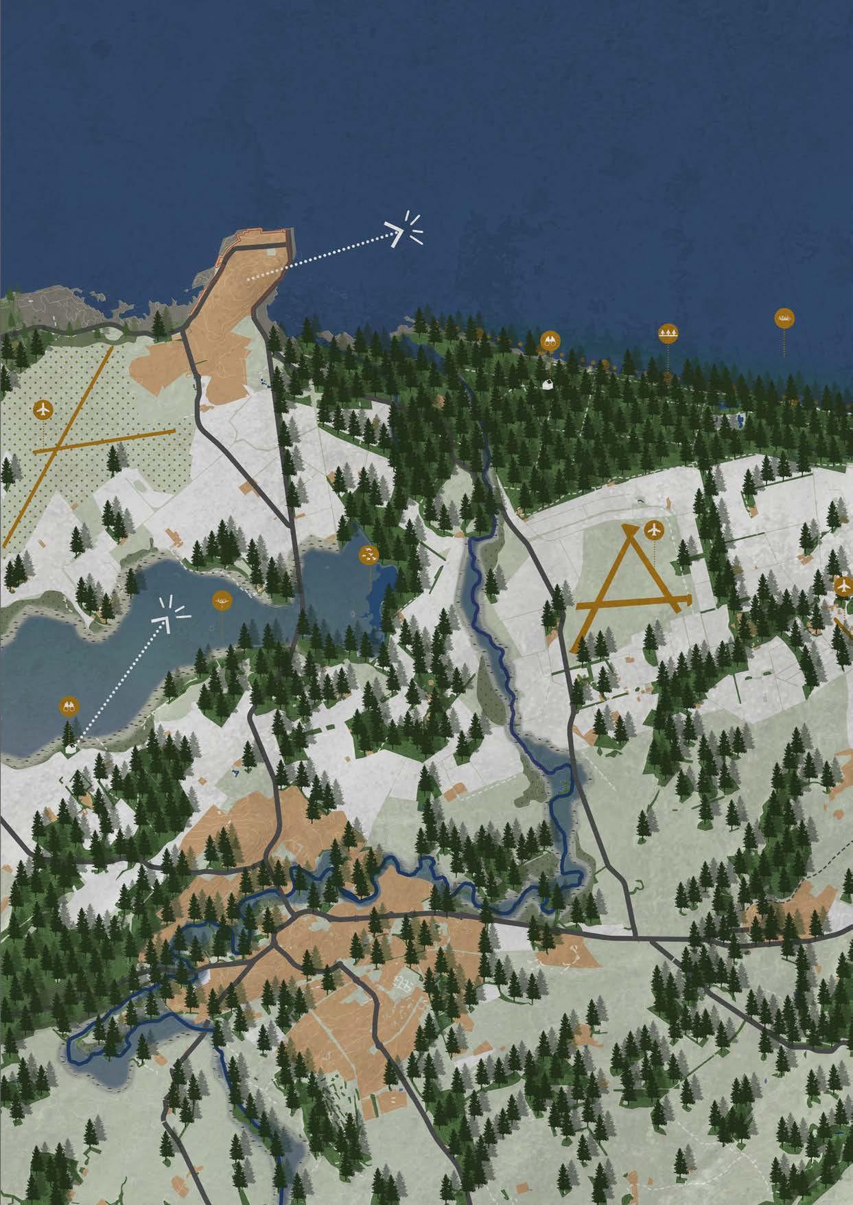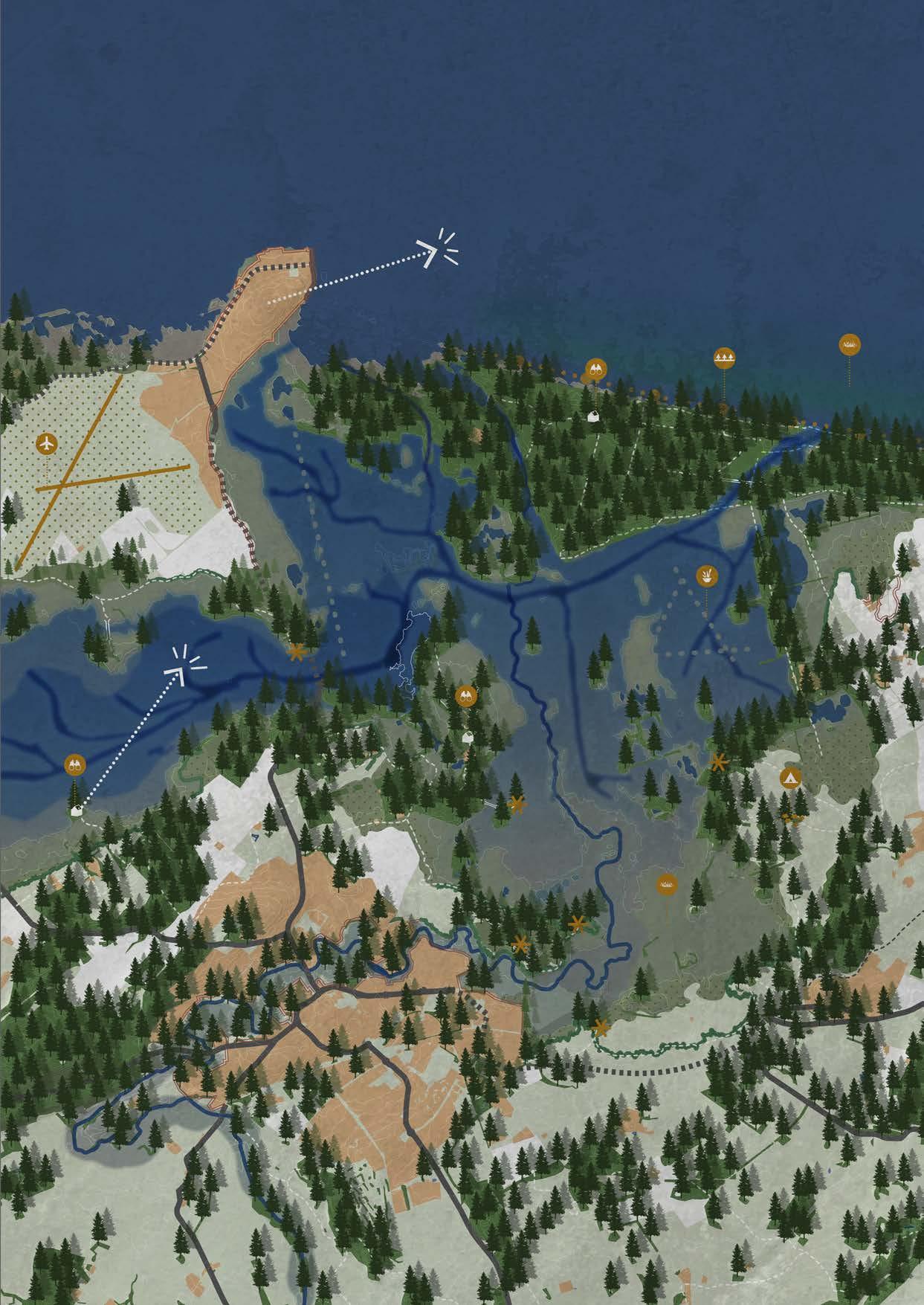 Rondom de stad zijn nieuwe landbouwgebieden ingericht. Deze lagen voorheen op de plek waar nu de delta en estuaria zijn ontstaan, waardoor landbouw en riviersysteem elk hun eigen plek hebben gekregen.