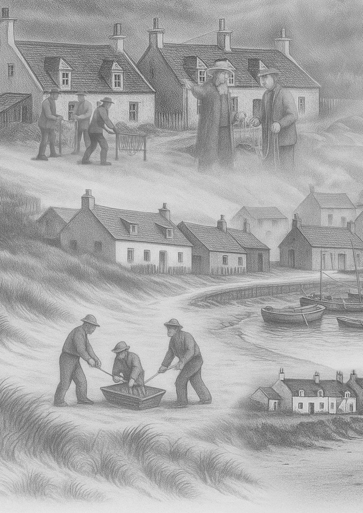 Aan de noordkust van Schotland, op de grens van Aberdeenshire en Moray, ligt het kleine vissersdorp Sandend, ingeklemd tussen duinen en kliffen. Het dorp kent een lange geschiedenis en behoort tot de oudste vissersgemeenschappen langs deze kust. De eerste bewoning gaat terug tot het begin van de zeventiende eeuw.