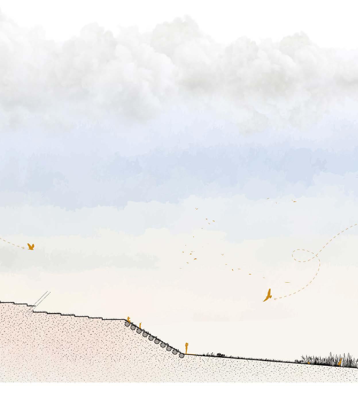 Dit project laat zien dat je niet alles kunt loslaten, maar ook niet alles kunt beschermen. Ontwerpen met erosie vraagt om tijd, geduld en het accepteren van verandering. Juist daarin schuilt de kracht van dit ontwerp: het leert ons de schoonheid en betekenis te herkennen van een landschap dat voortdurend in beweging is.