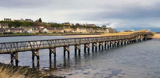 Aan de voet van de brug bevindt zich een haven. Vanuit hier vertrekken vissersbootjes naar zee en varen toeristenbootjes naar het oude Kingston, waarmee de relatie tussen verleden, landschap en water wordt versterkt. Ten zuiden van Kingston ligt Garmouth. Het dorp lag oorspronkelijk langs de rivier de Spey en ligt