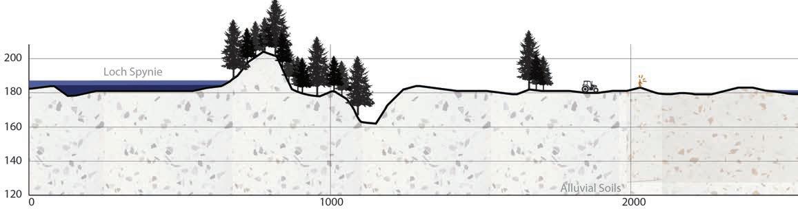 Langs de kust van Moray is de waterbeweging bijzonder actief. De rivier de Spey brengt wel sediment mee, maar door de sterke stroming wordt dit materiaal grotendeels de zee in gevoerd. Slechts een klein deel blijft tijdelijk langs de kust liggen voordat het opnieuw wordt meegenomen.
