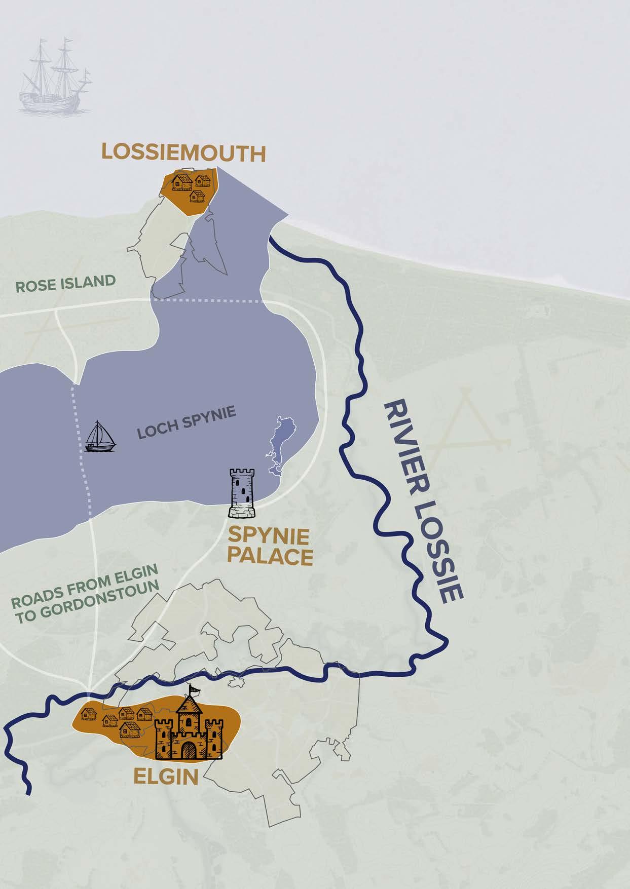 Elgin, iets verder landinwaarts, fungeerde lange tijd als het bestuurlijke hart van Moray. De band met de kust was daarbij essentieel. Spynie Loch deed eeuwenlang dienst als haven, totdat natuurlijke processen en menselijke ingrepen, zoals het droogleggen en kanaliseren van het meer in de negentiende eeuw, deze functie beëindigden. Ondanks dat bleef Elgin een belangrijk knooppunt in de regio.