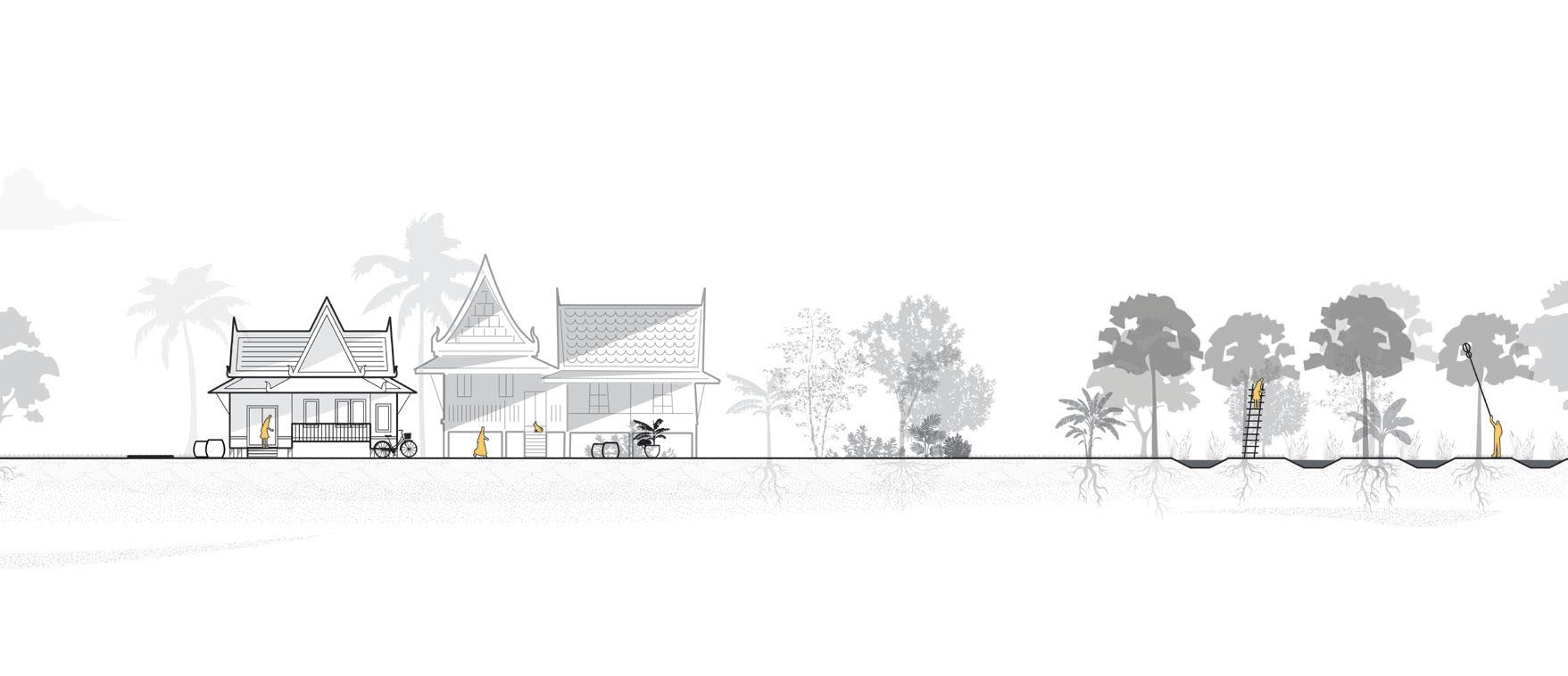 Traditional Thai architecture is amphibious by nature. It responds gracefully to changing water levels and creates comfortable microclimates amid rising urban heat.