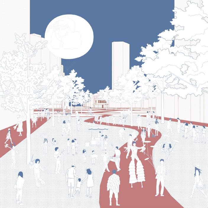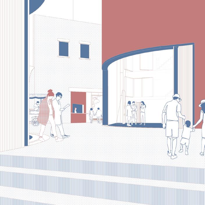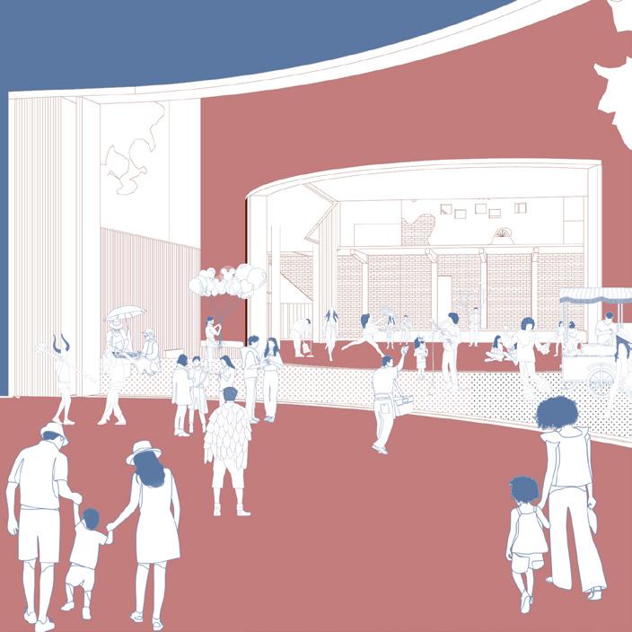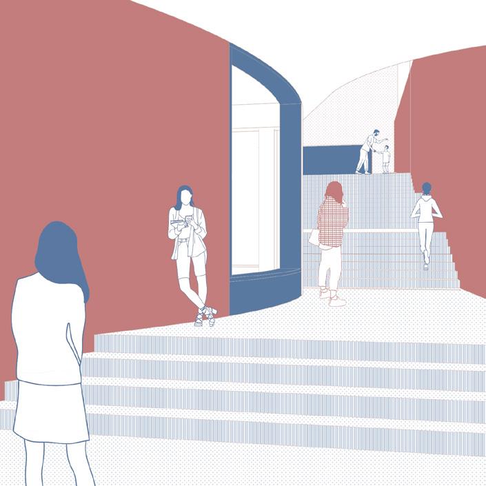 Furthermore, I’ve had the opportunity to delve into my fascination with designing public and inclusive spaces. I fnd immense joy in using architecture as a means to create welcoming environments where people feel connected and included. New Candelaria strives to integrate seamlessly into the city and society, aspiring to be as public and inclusive as possible. In this pursuit, I’ve drawn inspiration from the work of Lina Bo Bardi, whose designs prioritize adaptability over specifc functions.