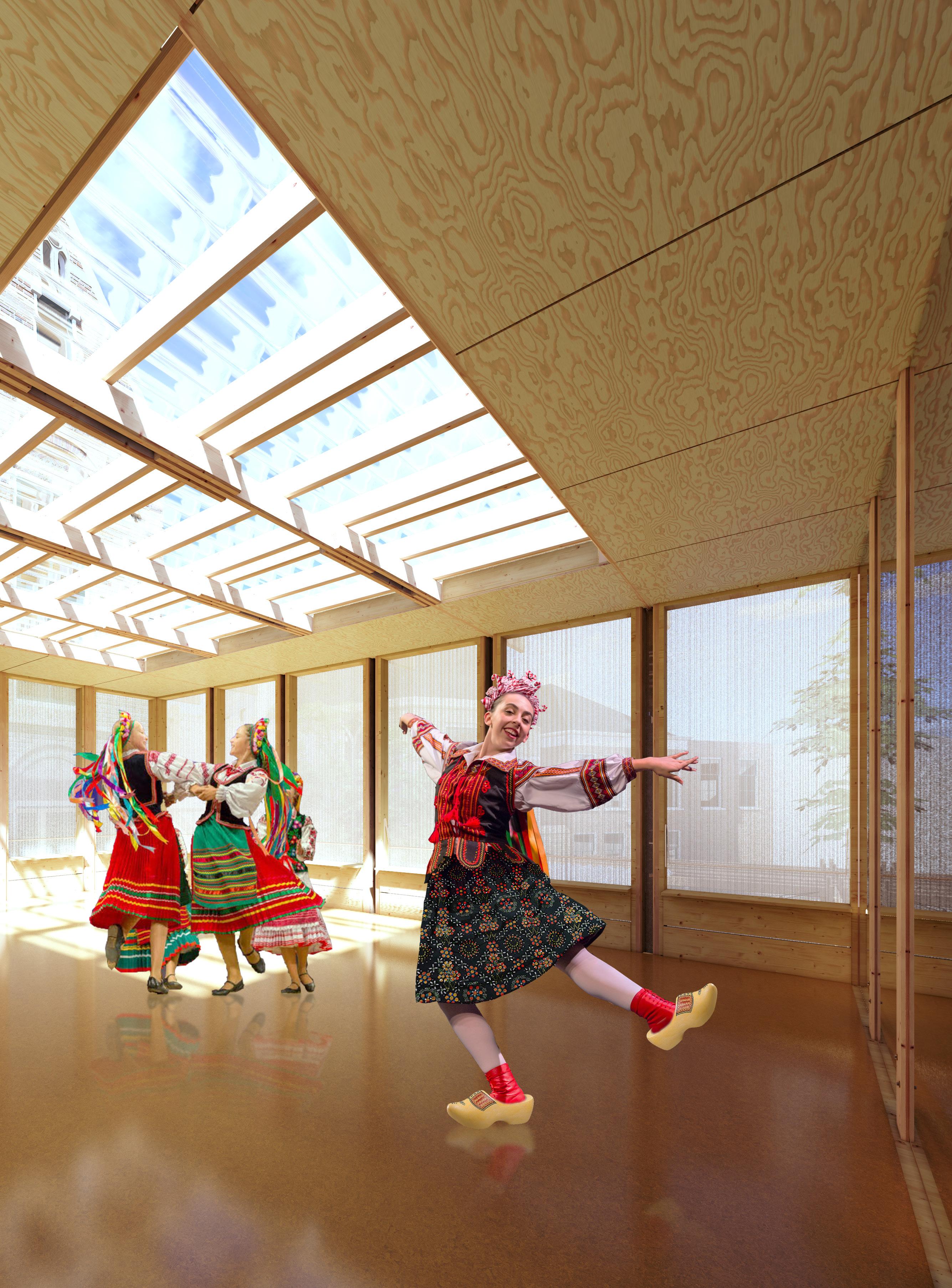 The wooden structure is the first in a series of phases that connects, activates, integrates and transfers ICH with the use of architectural and urban adjustments. Over time the structure will change and disappear while the activity in and around it finds a new home within the hearth of the city. Each of the phases activates different layers within city structure to slowly embed the change and redirect the frequentie of the city into a new culturally rich harmonie.