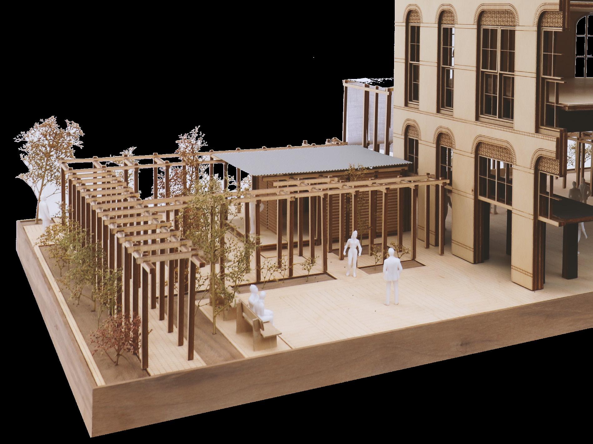 Within this strategy, architecture is used as a temporary tool and carrier of activity in the form of a wooden, modulair structure. The architecture is serving its users and changes along the desired use. Within the structure multiple spatial typologies can be formed to serve the varied spatial needs of the ICH communities. The location of the intervention is chosen along a series of conditions which can help ICH now and in the future. The pavilion is the catalyst of urban change.