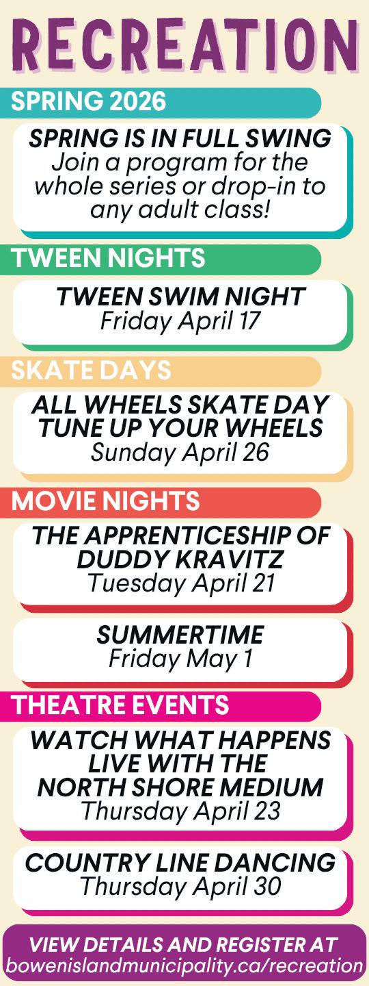 There’s lots more in the Calendar (including a Slo-Pitch Tourney supporting the Food Bank coming up!) as the Spring season heats up A quick note that our Island-Wide will be a bit earlier this month, going out next Friday, April 17. Submissions on Island happenings extremely welcome!