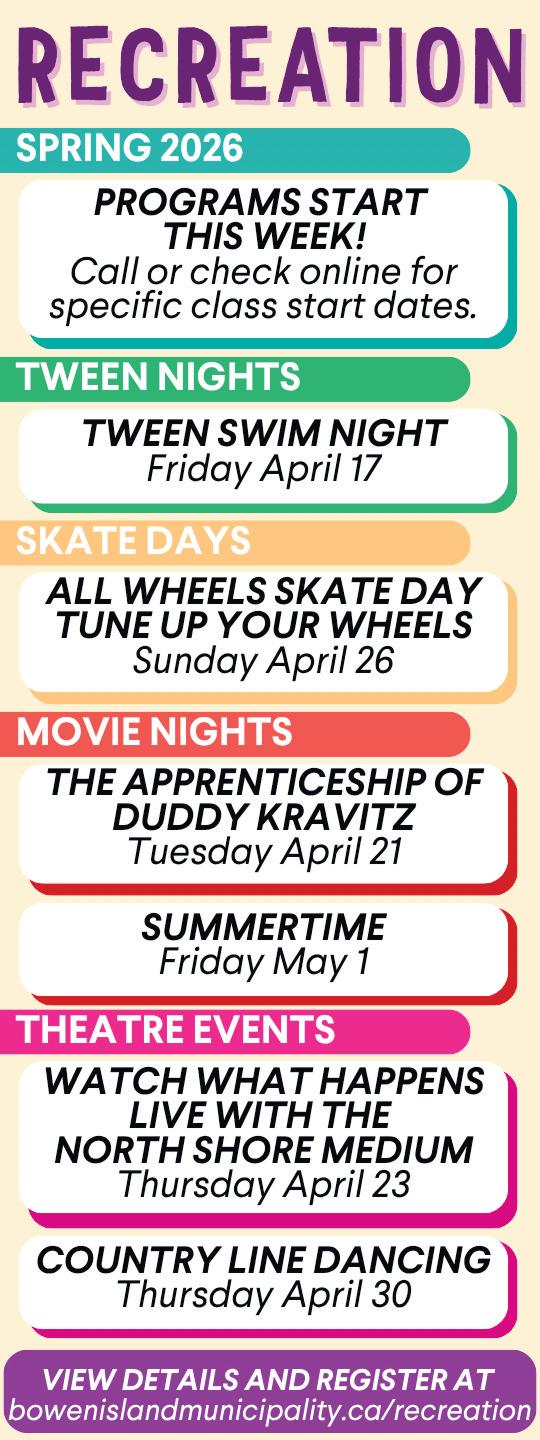 The Bowen Island Event Planner is on its way— check your mailbox this week!