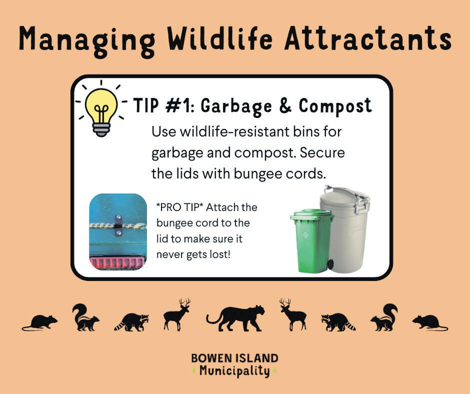 BowenIslandishometoawidevarietyofwildlife.Keepingwild animalsatasafedistancefrompeopleisoneofthemosteffective waystoprotectwildlife,residents,andourcommunity.