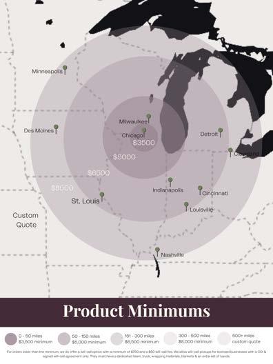 *Fororderslowerthantheminimum,wedoofferawill-calloptionwithaminimumof $750and$50will-call fee.Weallowwill-callpickupsforlicensedbusinessseswithaCOI&signedwill-callagreementonly. Theymusthavededicatedteam,truck,wrappingmaterials,blankets&extrasetofhands.