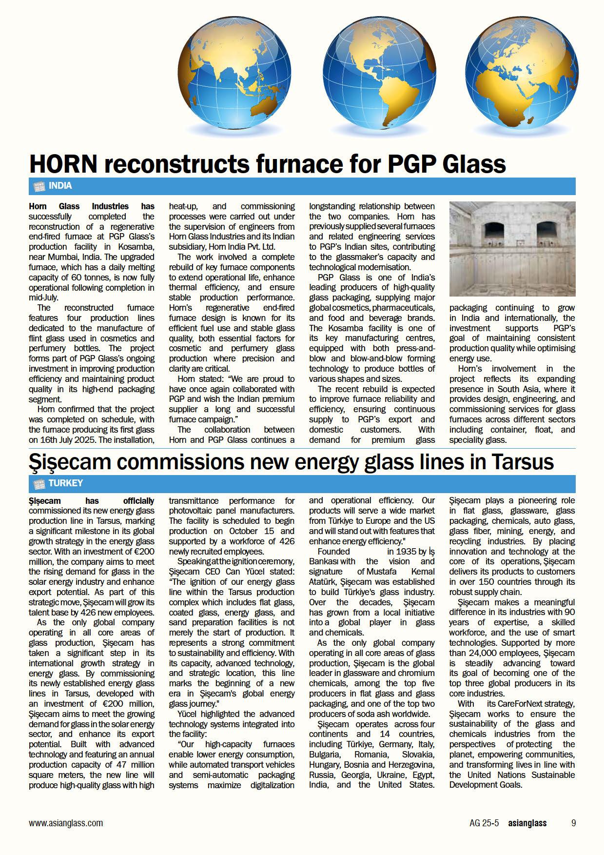 The project is being executed in collaboration with HORN Glass Industries of Germany, which will supply the glass melting furnaces and associated systems. A UAEbased civil works contractor and an international contract administration firm have been appointed to ensure compliance with high standards of project deliveryandoversight.