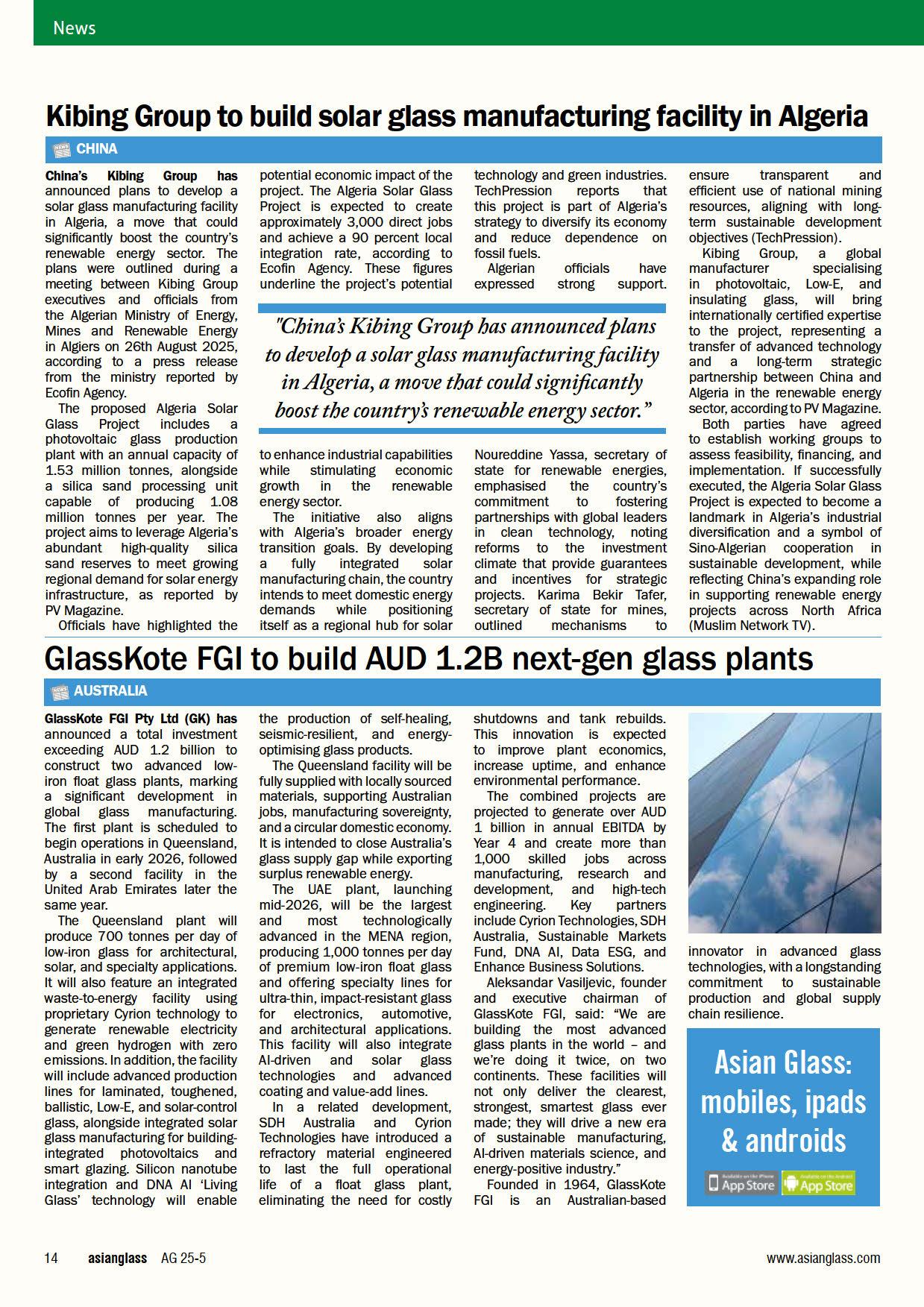 "Ournewfactorywillbeequipped with fully intelligent, digitalised production lines and world-leading coating technologies, representing the forefront of the global glass manufacturing industry. Our new facilitywillnotonlydeliverpremium energy-saving glass for the 1..1,\E and Gulf but alsooontributeto the long-term development of the local industrialecono�."