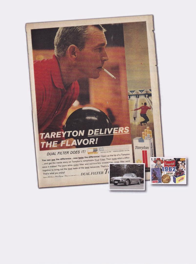 Smoking and bowling always went together... until they didn’t. What better way to squink yourself to a strike than with a dual filter Tareyton?