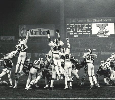 BYU came in led by Jim McMahon, the flashy quarterback with the big arm and personality to match. SMU rolled into town with two marquee running backs in sophomores Eric Dickerson and Craig James. Those two dominated most of the game, helping the Pony Express roll up over 300 yards rushing and own a 45-25 lead with four minutes to play.