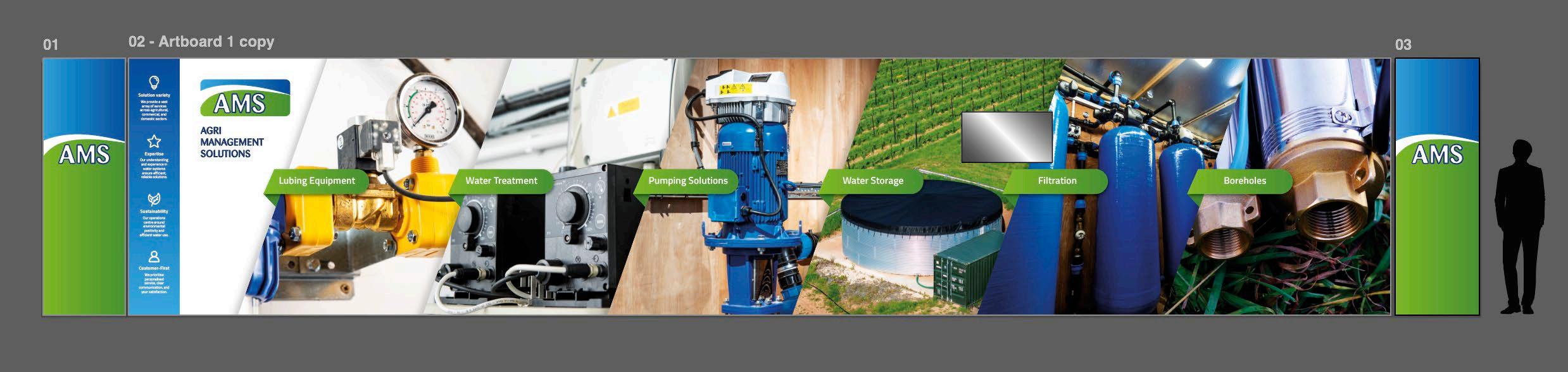 Commissioned directly by Agri Management Fabric, I was responsible for the complete 2D graphic design, production artworking, and print-ready file supply for a custom-built exhibition stand.