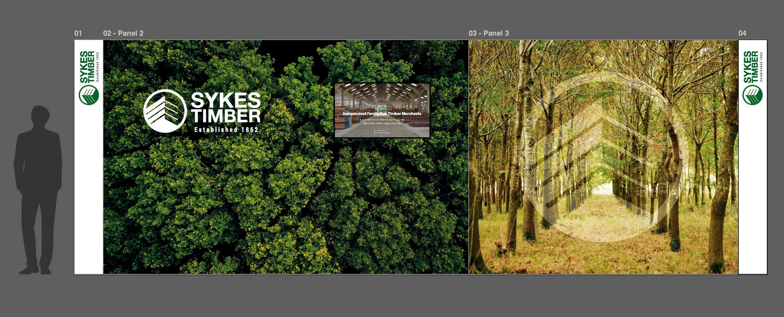 Produced the 2D panel artwork and print-ready file package for a small L-shaped custom exhibition stand for Skyes Timber, working on a freelance basis through an agency.