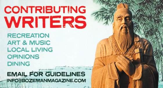 All writing, photos, and artwork remains property of the author, photographer, or artist. Opinions expressed are not necessarily those of Bozeman Magazine staff or advertisers. Send feedback, comments, suggestions, questions to: info@bozemanmagazine.com