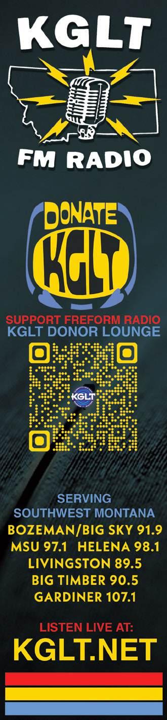 RENT 7:30pm • Shane Lalani Center for the Arts, 415 E. Lewis St., Livingston • $25 Adult, $13 Youth, $19 College/Senior/Military/ Educator • 406-222-1420 • www.theshanecenter.org Set in New York’s East Village, RENT is a raw and exhilarating story about love, friendship, and finding your voice. This special production will appear in both Livingston and Bozeman - an anthem for living boldly in the now.