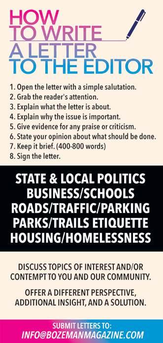 LETTER TO EDITOR STEVE MCGANN POLITELY SUBMIT DISCONTENT TO: INFO@BOZEMANMAGAZINE.COM