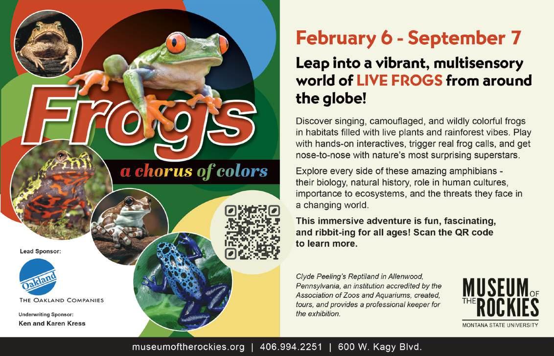 RAPTOR MEET AND GREET 10am • Museum of the Rockies, 600 West Kagy Boulevard, Bozeman • Included with membership/ admission • All Ages • 4069942251 • mor.ticketapp.org Meet the incredible birds of prey that serve as ambassadors from the Montana Raptor Conservation Center.