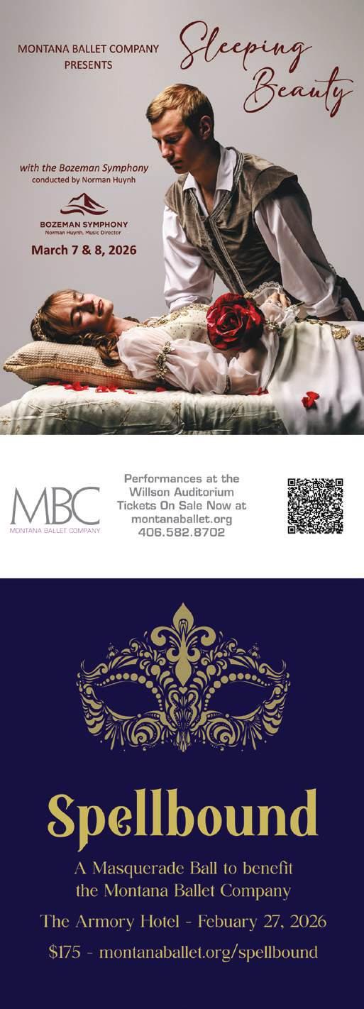 SPELLBOUND 6pm • Kimpton Armory Hotel, 24 W Mendenhall St, Bozeman • $175 • (406) 551-7702 • www.armoryhotelbzn.com Step into a world where fairytales come to life. A masquerade ball to benefit Montana Ballet Company.