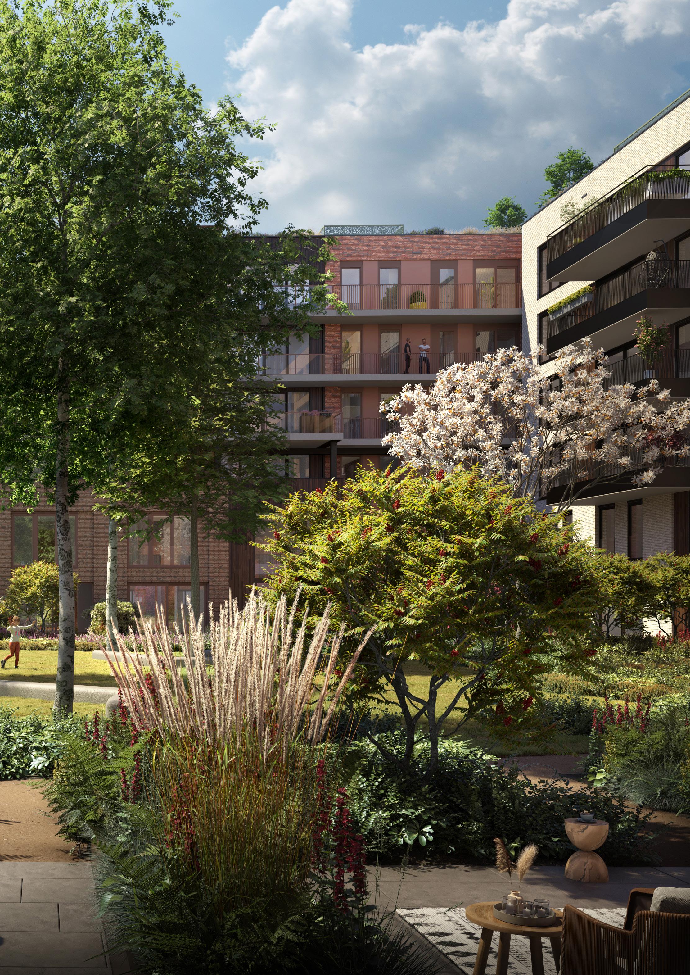 De binnentuin is deels semi-openbaar en deels privé. Het semi-openbare deel wordt ingericht met verhardingen, plantenbakken, beplantingen, bomen en meubilair. De privé buitenruimten die grenzen aan het semi-openbare deel worden ingericht met tegels en met verhoogde plantenbakken met planten en hesters voor uw privacy tussen de woningen.