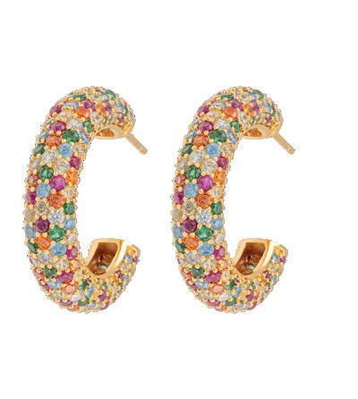 Featuring a cluster of dazzling multicoloured gems, these 18k gold plated brass Chunky Hoops by Norwegian jewellery brand Emilia are made to stand out. Pair with spring florals or summer neutrals to add a pop of colour to any look. £POA; E: ditte@bondep.com