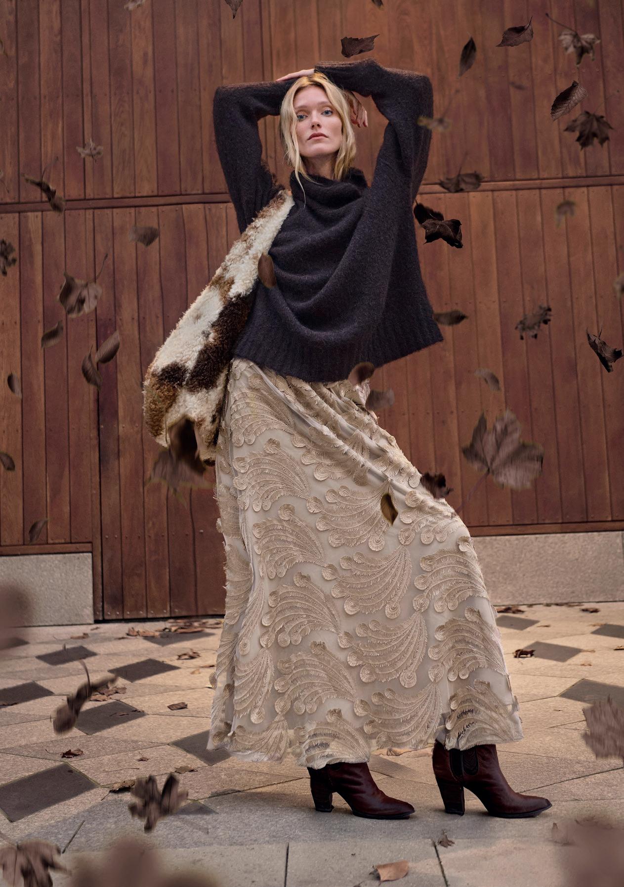 Patterson and Burrows purposely create full looks each season when planning their edits, selecting a statement skirt, for example, alongside three different options of tops. “We want every piece to work hard in a wardrobe. Customers don’t want to save things for best anymore, so if someone buys a £300 Paige jean, they can pair it with a £40 tee or elevate it for a special occasion.”