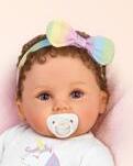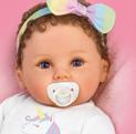 Diese wundervolle Babypuppe wurde von der weltweit renommierten Puppenkünstlerin Ping Lau entwickelt. Jedes lebensechte Detail, von den Wangen und lächelnden Lippen bis hin zu den Nägeln an Fingern und Zehen, hat die Künstlerin sorgfältig modelliert und anschließend mit unserem charakteristischen RealTouch®-Vinyl nachgebildet. Die feine Handkoloration erweckt das süße Gesicht vollends zum Leben. Die Haare sind von Hand verwurzelt und halten Sie den kleinen Schatz in Ihren Armen, spüren Sie das lebensnahe Gewicht. Die Puppe ist vielfältig positionierbar und kann für perfekte Fotopositionen arrangiert werden. Das Stirnband im Bandana-Stil vervollständigt das süße Ensemble. Größe: 43,7 cm. Artikel-Nr.: 03-03280-001 • € 149,85 (zahlbar auch in 3 Monatsraten zu je € 49,95) zzgl. € 9,95 Versand