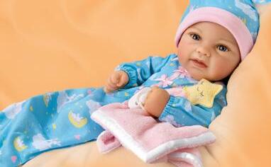 Aus dem einzigartigen RealTouch®-Vinyl handgefertigt. Durch das natürliche Gewicht ist das Tragegefühl ähnlich wie bei einem Baby. Fühlen Sie nicht nur die lebensechte Haut, sondern spüren Sie auch das realistische Gewicht, wenn Sie „Dani“ sanft in Ihren Armen wiegen. Die feinen Haare sind von Hand verwurzelt. Mit maßgeschneidertem Ensemble, aus einem kuscheligen Schlafanzug mit Fäustlingen sowie einem dazu passenden Mützchen. Inklusive rosa Decke mit Tarnmuster. Größe: 43,2 cm. Artikel-Nr.: 03-03191-001 • € 169,80 (zahlbar auch in 4 Monatsraten zu je € 42,45) zzgl. € 9,95 Versand