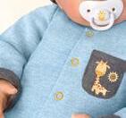 Lebensechte Babypuppe im niedlichen Lederhosenstrampler