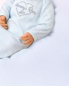 Dieser kleine Schatz ist aus lebensnahem RealTouch®-Vinyl von Hand gefertigt und alles an ihm ist mit viel Liebe zum Detail lebensecht gestaltet und koloriert. Wiegen Sie den kleinen Engel mit seinem weichen Sto körper in Ihren Armen und Sie spüren sein lebensnahes Gewicht. Auf der Front des zartblauen Stramplers stehen die Worte „Mommy’s Boy“ (dt. „Mamis Junge“). Mit Mützchen und magnetischem Schnuller. Größe: 40,6 cm.