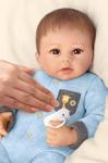 Dieser kleine Schatz ist aus lebensnahem RealTouch®-Vinyl von Hand gefertigt und alles an ihm ist mit viel Liebe zum Detail lebensecht gestaltet und koloriert. Wiegen Sie den kleinen Engel mit seinem weichen Sto körper in Ihren Armen und Sie spüren sein lebensnahes Gewicht. Auf der Front des zartblauen Stramplers stehen die Worte „Mommy’s Boy“ (dt. „Mamis Junge“). Mit Mützchen und magnetischem Schnuller. Größe: 40,6 cm.