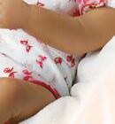 Aus dem einzigartigen RealTouch®-Vinyl handgefertigt. Durch das natürliche Gewicht ist das Tragegefühl ähnlich wie bei einem Baby. Fühlen Sie nicht nur die lebensechte Haut, sondern spüren Sie auch das realistische Gewicht, wenn Sie „Dani“ sanft in Ihren Armen wiegen. Die feinen Haare sind von Hand verwurzelt. Mit maßgeschneidertem Ensemble, aus einem kuscheligen Schlafanzug mit Fäustlingen sowie einem dazu passenden Mützchen. Inklusive rosa Decke mit Tarnmuster. Größe: 43,2 cm.