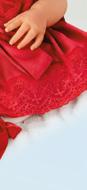 Die kleine „Gianna“ wird von Hand aus RealTouch®-Vinyl, welches zarte Babyhaut lebensecht nachemp ndet, gefertigt. Die kunstvoll gestalteten Gesichtszüge sind von Hand koloriert und jedes kleinste plastische Detail ist realistisch abgebildet. Der weiche Sto körper besitzt ein lebensnahes Gewicht und schmiegt sich angenehm in Ihre Arme. Die feinen Haare sind von Hand verwurzelt. Ihr Kopf und ihre Gliedmaßen sind beweglich, so dass Sie „Gianna“ nach Belieben in Szene setzen und das perfekte Weihnachtsfoto machen können. „Gianna“ trägt ein luxuriöses, rotes Satinkleid mit roter Spitze an der Passe und den Ärmeln sowie Spitzenbesatz an den Rocksäumen. Die überdimensionale Schleife an ihrem Kleid wird mit einem funkelnden, silbernen Kunstedelsteinbesatz geschlossen, während ihre Haarsträhnen durch ein passendes, rotes Stirnband an Ort und Stelle gehalten werden. Rote Satinschühchen und eine weiße Strumpfhose komplettieren das elegante Out t. Und natürlich darf auch ihr hübscher silberfarbener Weihnachtsschmuck mit Schmucksteinen, Metallband und Platz für ein eigenes Foto nicht fehlen. Das Accessoire kann von „Gianna“ gehalten oder an den Baum gehängt werden. Größe: 43,2 cm. Ornamentgröße: 12,7 x 8,3 cm (B x H). Artikel-Nr.: 03-03282-001 • CHF 149.85 (zahlbar auch in 3 Monatsraten zu je CHF 49.95) zzgl. CHF 9.95 Versand