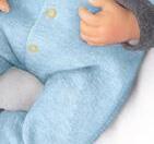 Ganz stolz trägt der kleine „Anton“ seinen ersten eigenen Lederhosenstrampler und freut sich riesig zusammen mit seinen Eltern im Kinderwagen auf die örtliche Kirmes zu gehen. Mama hat ihm extra eine süße Mütze mit einem Aufnäher „Lausbub“ genäht, welche perfekt zu seinem Strampler passt. Als „Anton“ von Papa dann auch noch einen neuen Schnuller geschenkt bekommt, ist sein Glück perfekt! „Fescher Anton“ ist eine hinreißende Künstlerpuppe der geschätzten Künstlerin Linda Murray. „Anton“ kommt mit aufwendig geschneidertem Lederhose-Strampler, einer bestickten Mütze und einem dazu passenden Schnuller zu Ihnen nach Hause. Dank der Verwendung des einzigartigen RealTouch®-Vinyls, werden Sie über „Antons“ weiche Haut staunen. Sie fühlt sich wie die Haut eines echten Babys an. Größe: 45,7 cm.