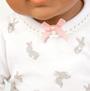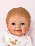Die rosigen Wangen, die winzigen Finger und Zehchen, der zuckersüße Gesichtsausdruck – alles an „Alex“ ist so realistisch von Hand aus RealTouch®-Vinyl gefertigt und bemalt, dass man ihn am liebsten in den Arm nehmen und nie wieder ablegen möchte. Die zarten, lebensechten Haare sind von Hand eingesetzt, während sein weicher und beweglicher Sto körper das Gewicht eines echten Babys simuliert. „Alex“ trägt ein für ihn maßgeschneidertes Ä chen-Ensemble, bestehend aus einem Strampler mit Ä chenAufdruck, aufgestickten A engesichtern an den Füßen und einem dazu passenden Mützchen. Größe: 45,7 cm.