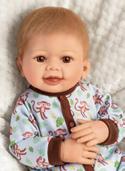 Dieser kleine Schatz ist aus lebensnahem RealTouch®-Vinyl von Hand gefertigt und alles an ihm ist mit viel Liebe zum Detail lebensecht gestaltet und koloriert. Wiegen Sie den kleinen Engel mit seinem weichen Sto körper in Ihren Armen und Sie spüren sein lebensnahes Gewicht. Auf der Front des zartblauen Stramplers stehen die Worte „Mommy’s Boy“ (dt. „Mamis Junge“). Mit Mützchen und magnetischem Schnuller. Größe: 40,6 cm.