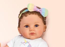 Diese wundervolle Babypuppe wurde von der weltweit renommierten Puppenkünstlerin Ping Lau entwickelt. Jedes lebensechte Detail, von den Wangen und lächelnden Lippen bis hin zu den Nägeln an Fingern und Zehen, hat die Künstlerin sorgfältig modelliert und anschließend mit unserem charakteristischen RealTouch®-Vinyl nachgebildet. Die feine Handkoloration erweckt das süße Gesicht vollends zum Leben. Die Haare sind von Hand verwurzelt und halten Sie den kleinen Schatz in Ihren Armen, spüren Sie das lebensnahe Gewicht. Die Puppe ist vielfältig positionierbar und kann für perfekte Fotopositionen arrangiert werden. Das Stirnband im Bandana-Stil vervollständigt das süße Ensemble. Größe: 43,7 cm. Artikel-Nr.: 03-03280-001 • € 149,85 (zahlbar auch in 3 Monatsraten zu je € 49,95) zzgl. € 9,95 Versand
