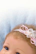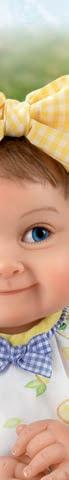 Entworfen von der Puppenkünstlerin Ping Lau gibt die Puppe realistische Laute von sich, je nachdem, wie sie gehalten wird: Wenn Sie sie an Ihre Schulter legen, weint sie erst und beruhigt sich dann, wiegen Sie sie auf ihrer rechten Seite, lässt sie ein süßes Gurgeln hören, legen Sie sie nach links beginnt sie zu brabbeln, hebt man sie hoch und schaut ihr ins Gesicht, beginnt sie zu kichern, und wenn man sie auf ihren Bauch legt, kann man ihr Gurren hören. Aus RealTouch®-Vinyl. Mit handverwurzeltem Haar und beweglichem Stokörper. Inklusive maßgeschneidertem Strampler.