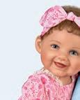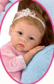 Entworfen von der Puppenkünstlerin Ping Lau gibt die Puppe realistische Laute von sich, je nachdem, wie sie gehalten wird: Wenn Sie sie an Ihre Schulter legen, weint sie erst und beruhigt sich dann, wiegen Sie sie auf ihrer rechten Seite, lässt sie ein süßes Gurgeln hören, legen Sie sie nach links beginnt sie zu brabbeln, hebt man sie hoch und schaut ihr ins Gesicht, beginnt sie zu kichern, und wenn man sie auf ihren Bauch legt, kann man ihr Gurren hören. Aus RealTouch®-Vinyl. Mit handverwurzeltem Haar und beweglichem Stokörper. Inklusive maßgeschneidertem Strampler. Größe: 45,7 cm hoch