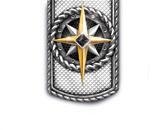 Der Dog-Tag-Anhänger ist aus Edelstahl von Hand gefertigt. Im Zentrum präsentiert er einen prächtigen Kompass des Glaubens, der mit ionenvergoldeten Akzenten verziert ist. Ein echter schwarzer Onyx hebt sich in dem Kompassdesign ab. Auf der Rückseite steht der Spruch „Lieber Sohn, der Glaube ist weder ein Anker, der dich an deinem Platz hält, noch ein Segel, das dich dorthin bringt, sondern ein Kompass, der dir den Weg zeigt“ (in Englisch).
